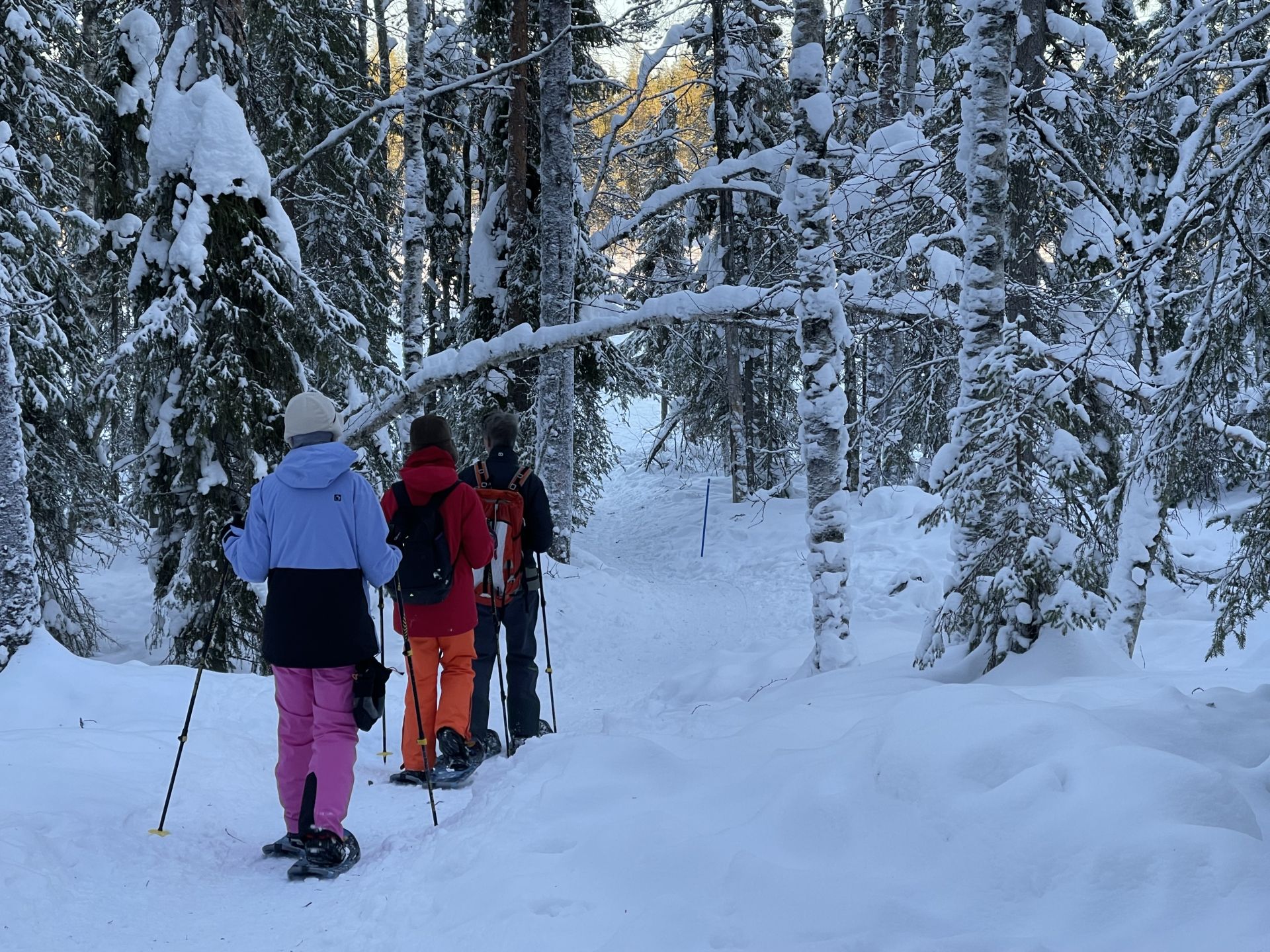 Nous empruntons la piste balisée et bien tassée en direction du sommet en hésitant à laisser nos raquettes à neige dans la voiture. Plusieurs randonneurs passent à proximité et sont à pied. Finalement, nous choisissons de les prendre avec nous et après quelques centaines de mètres nous décidons de nous équiper. Finalement c'était un bon choix. Les raquettes sont très agréable, légère et les crampons intégrés nous évitent de glisser dans les passages un plus raide.