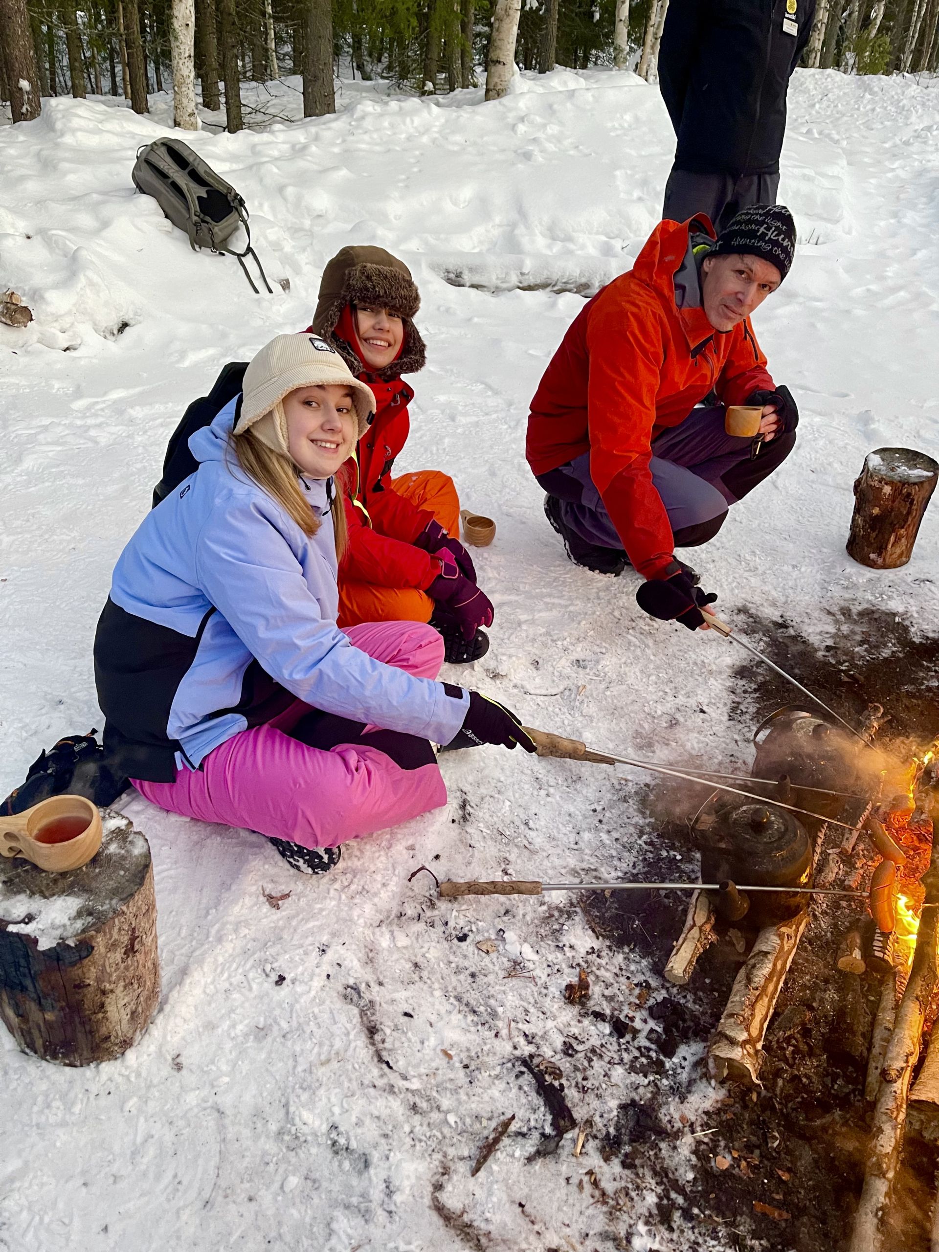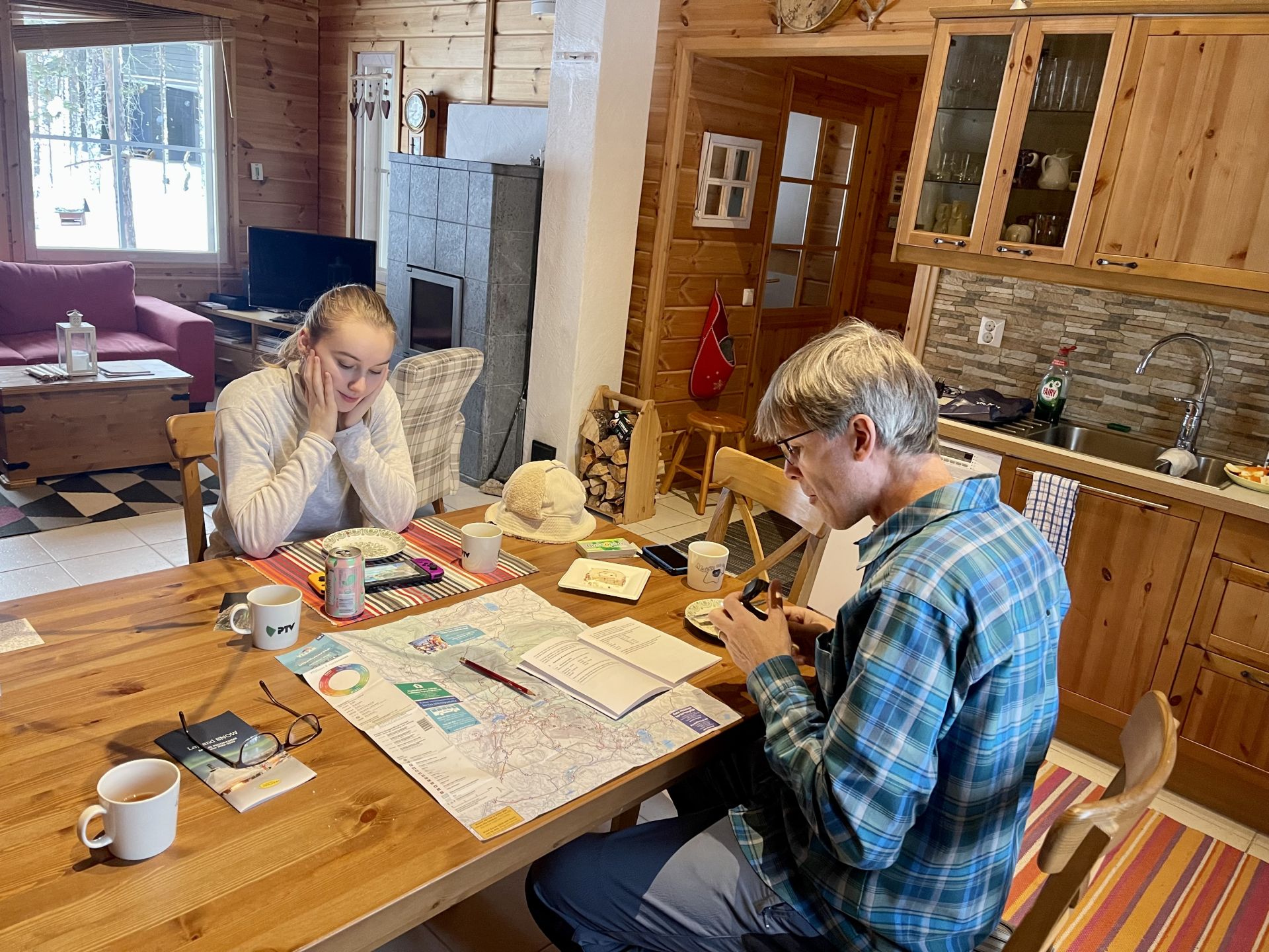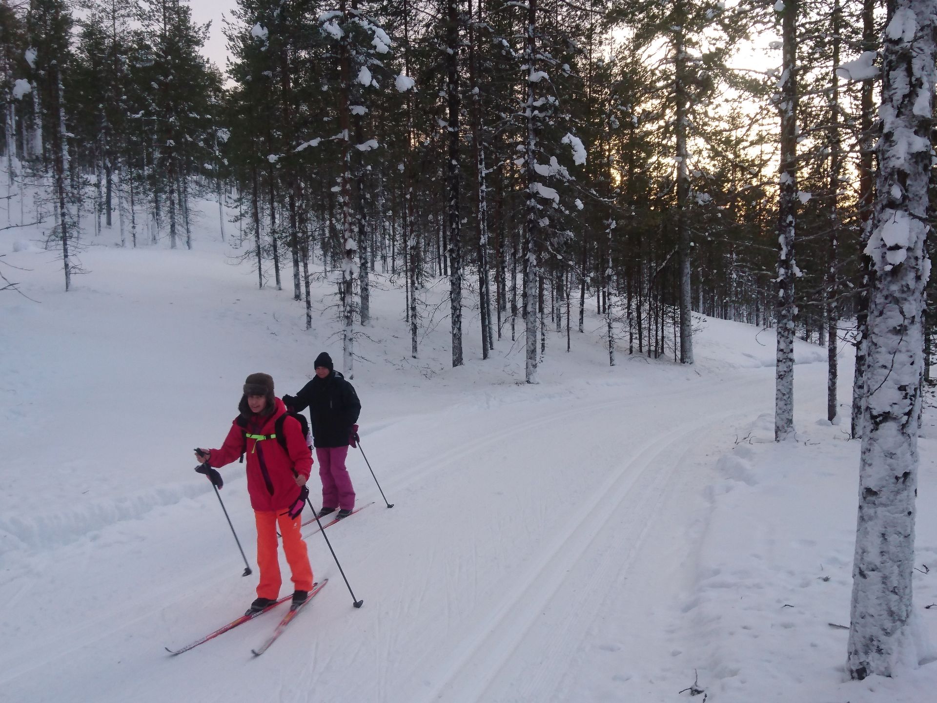 En début d'après-midi, un petit pique-nique dans notre chalet a précédé une petit tour à ski de fond au départ du chalet et jusqu'à Velhonkota à 3km au Sud-Ouest d'Äkäslompolo.