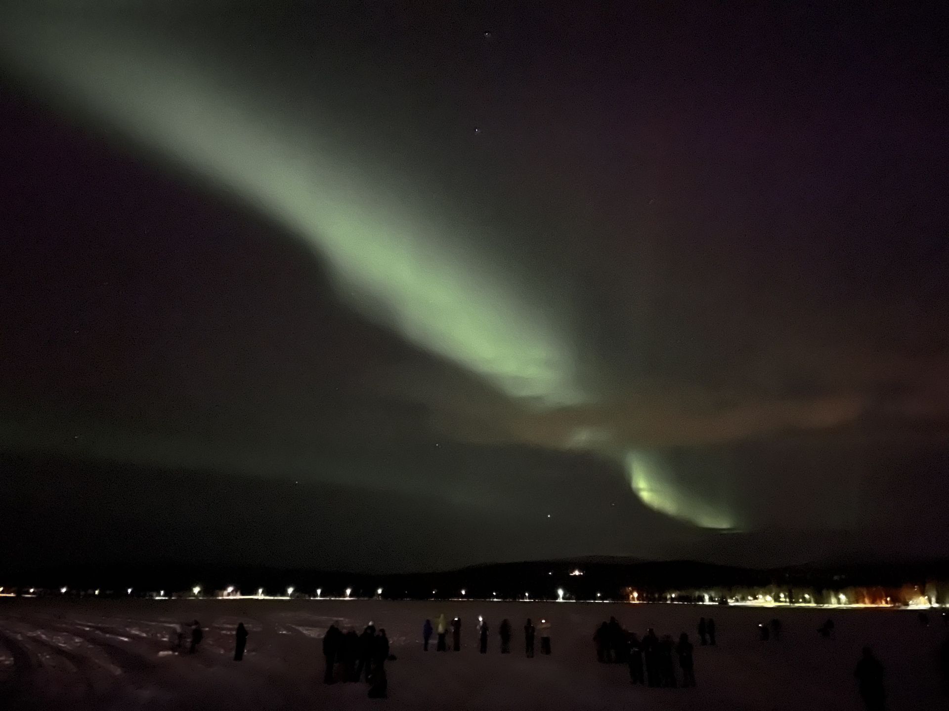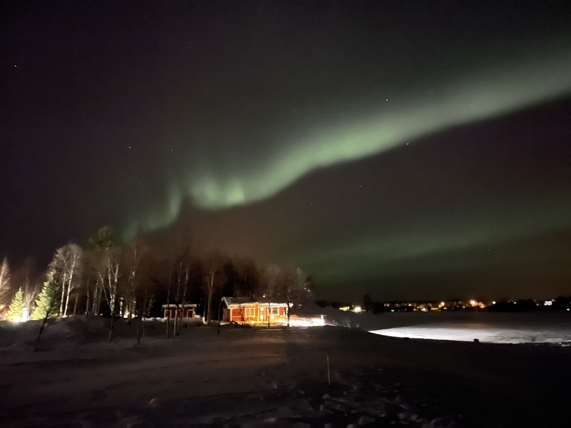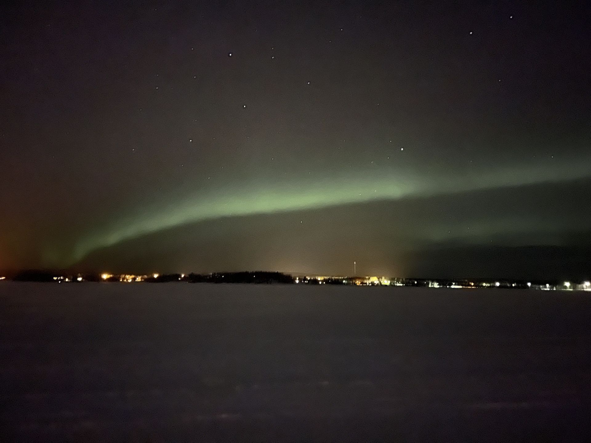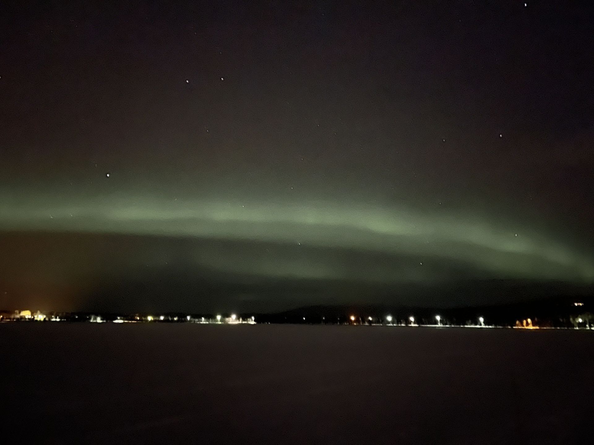 En début de soirée, l'alerte "aurores boréales" de Kontiki nous informe que les prévisions d'aurores sont moyennes, mais quelques minutes plus tard, on nous anonce une aurore forte, mais basse sur l'horizon en direction du nord. Branle-bas de combat, on s'équipe, on s'habille, on saute dans la voiture et on part en direction du lac pour profiter d'un point de vue recommandé et facilement accessible. Nous avons bien fait de nous déplacer (cf. photos ci-après)...