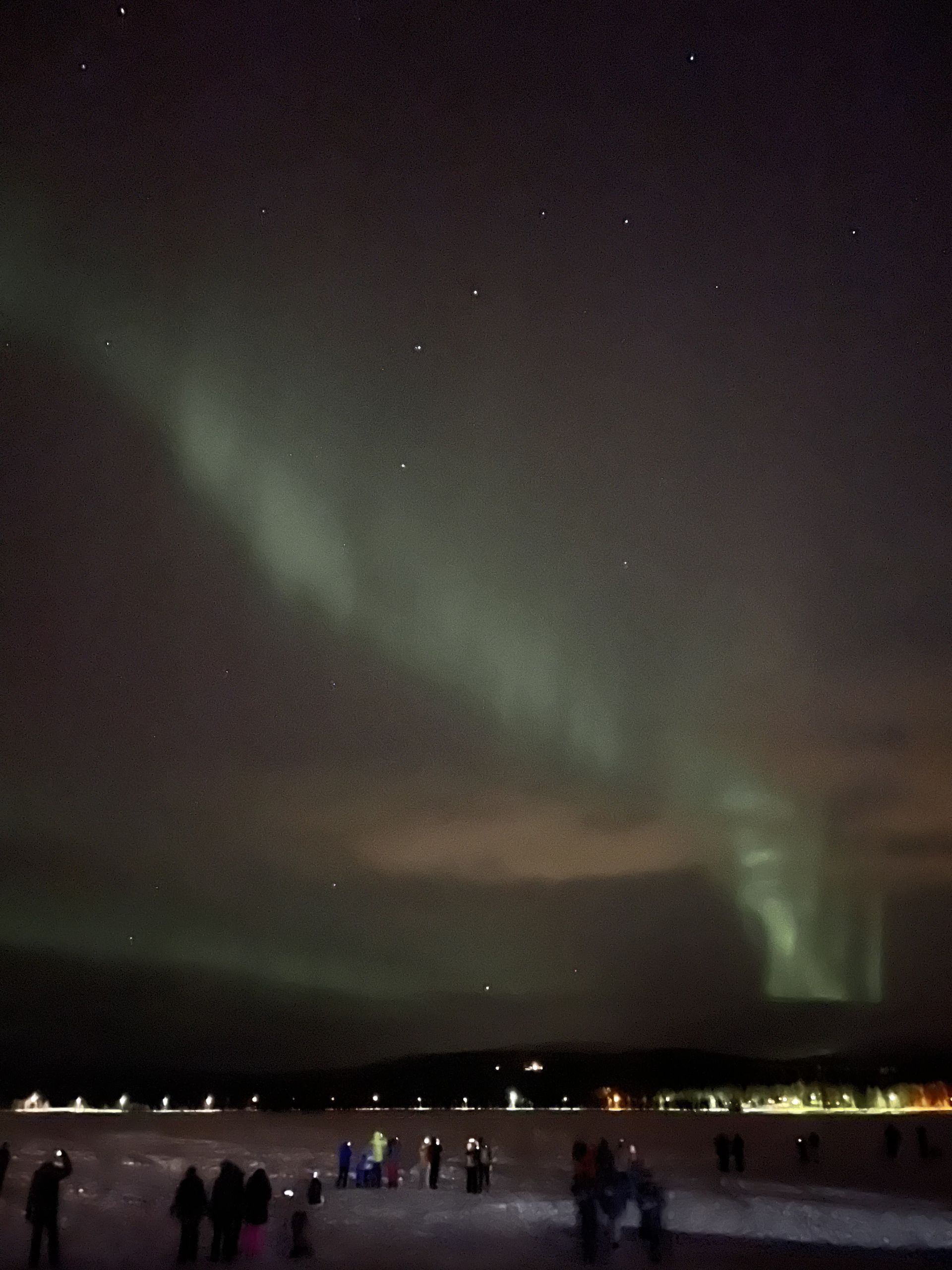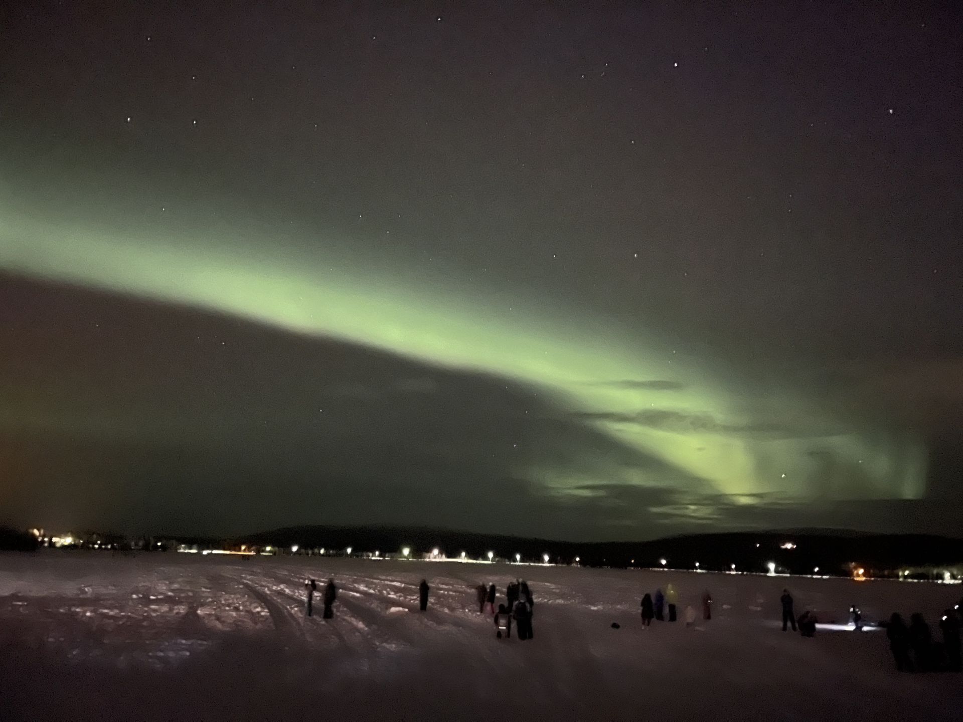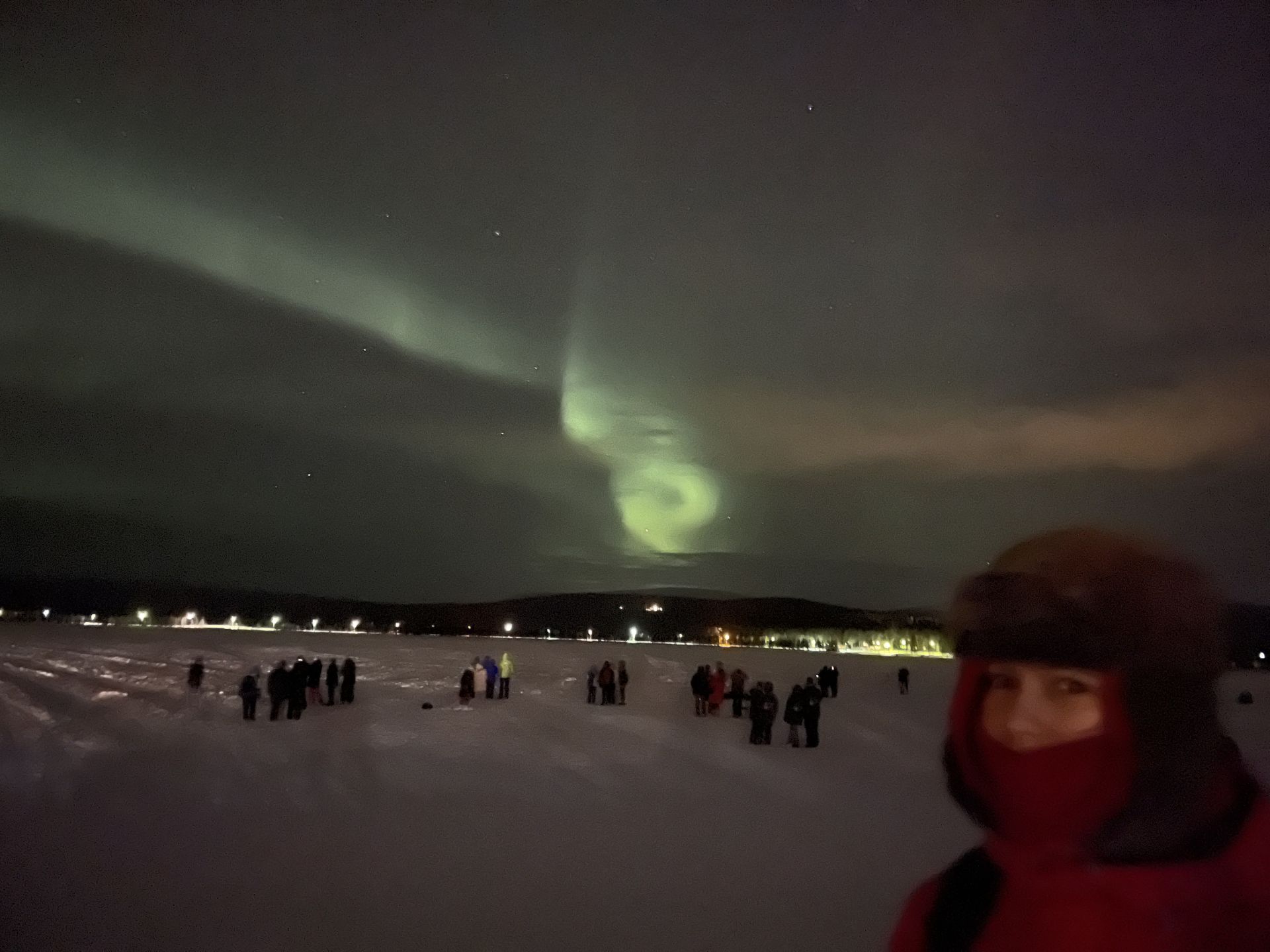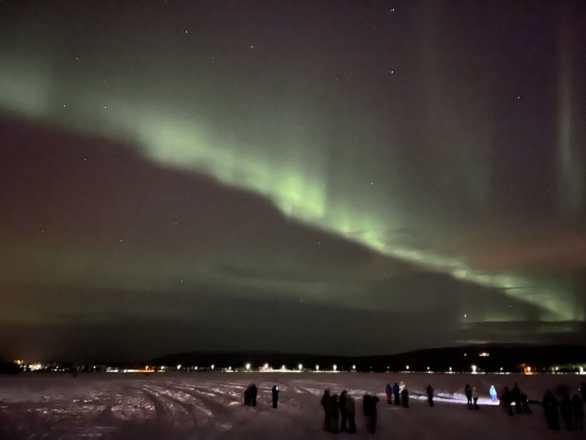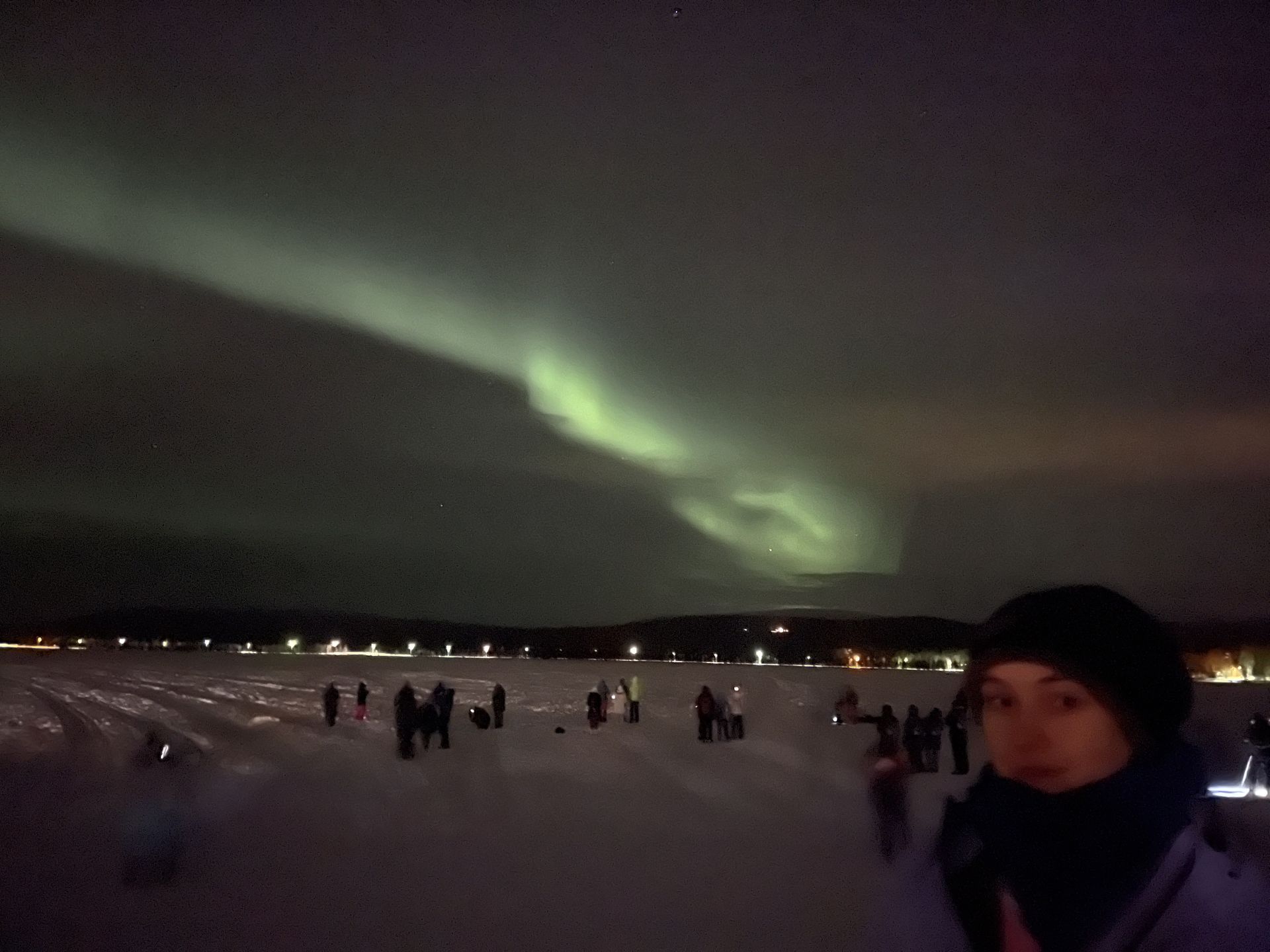 En début de soirée, l'alerte "aurores boréales" de Kontiki nous informe que les prévisions d'aurores sont moyennes, mais quelques minutes plus tard, on nous anonce une aurore forte, mais basse sur l'horizon en direction du nord. Branle-bas de combat, on s'équipe, on s'habille, on saute dans la voiture et on part en direction du lac pour profiter d'un point de vue recommandé et facilement accessible. Nous avons bien fait de nous déplacer (cf. photos ci-après)...