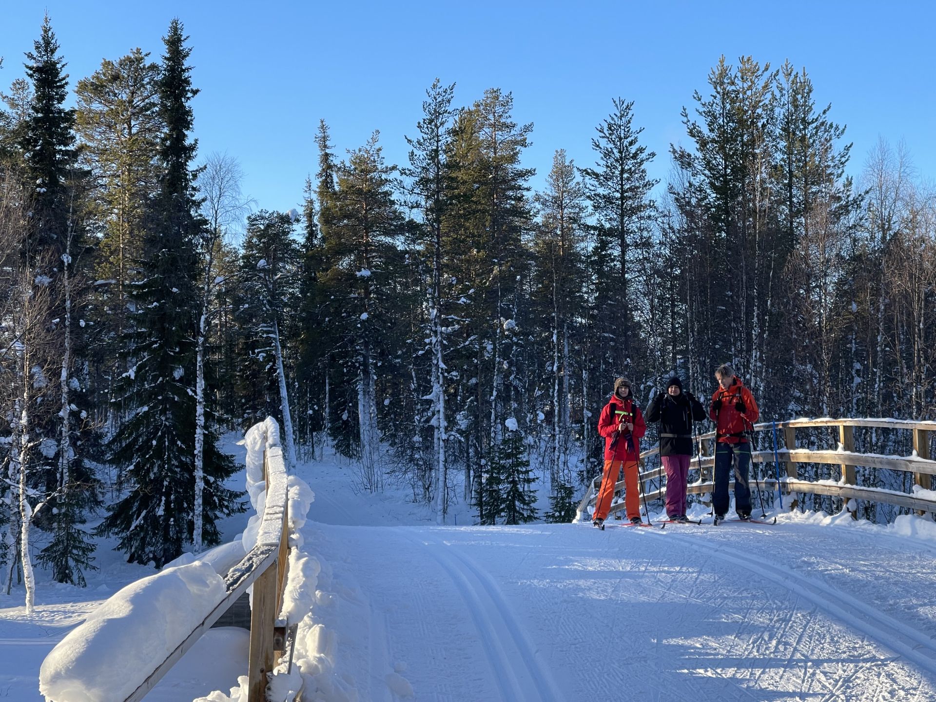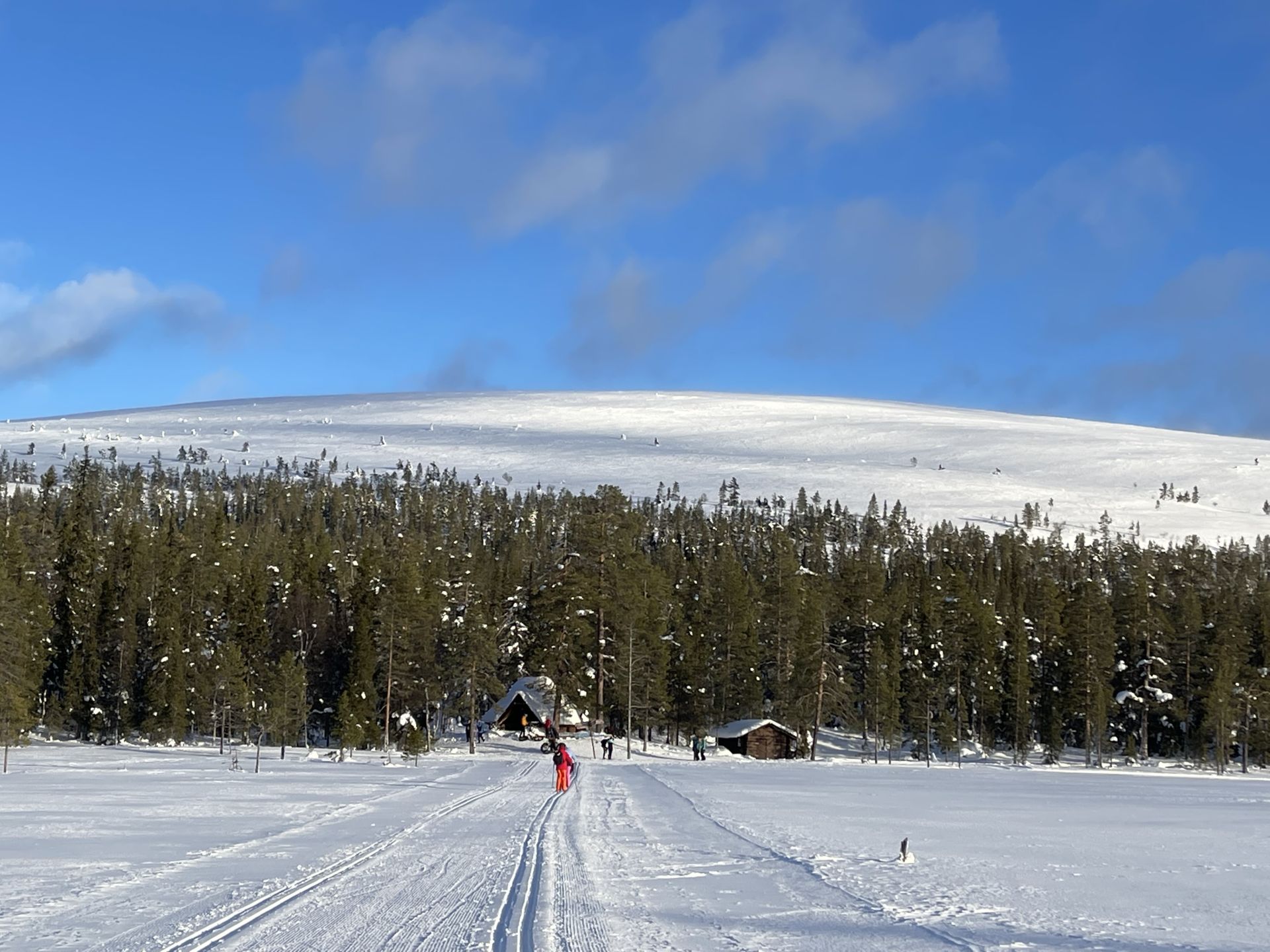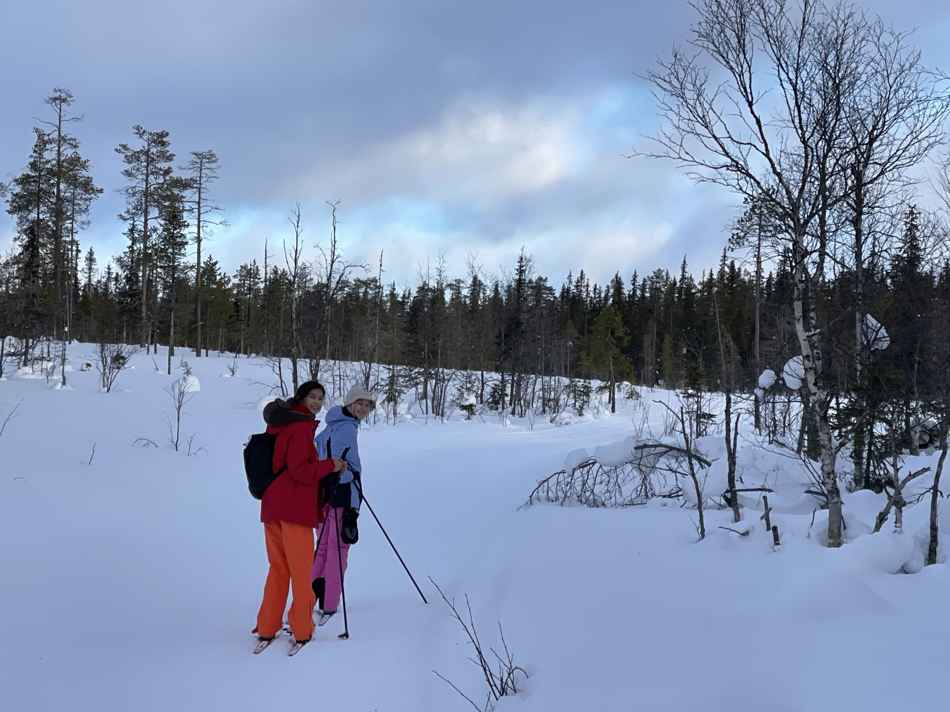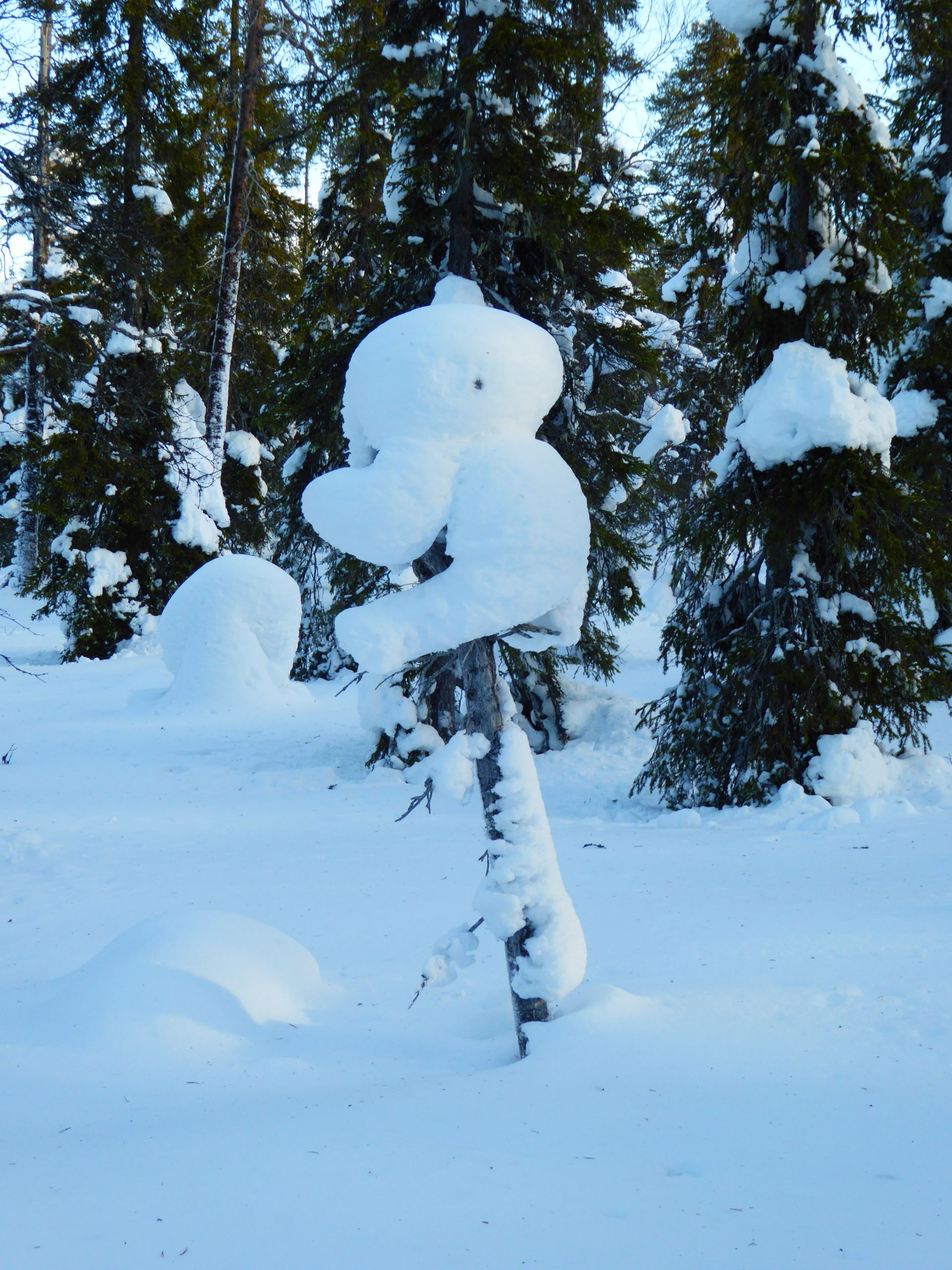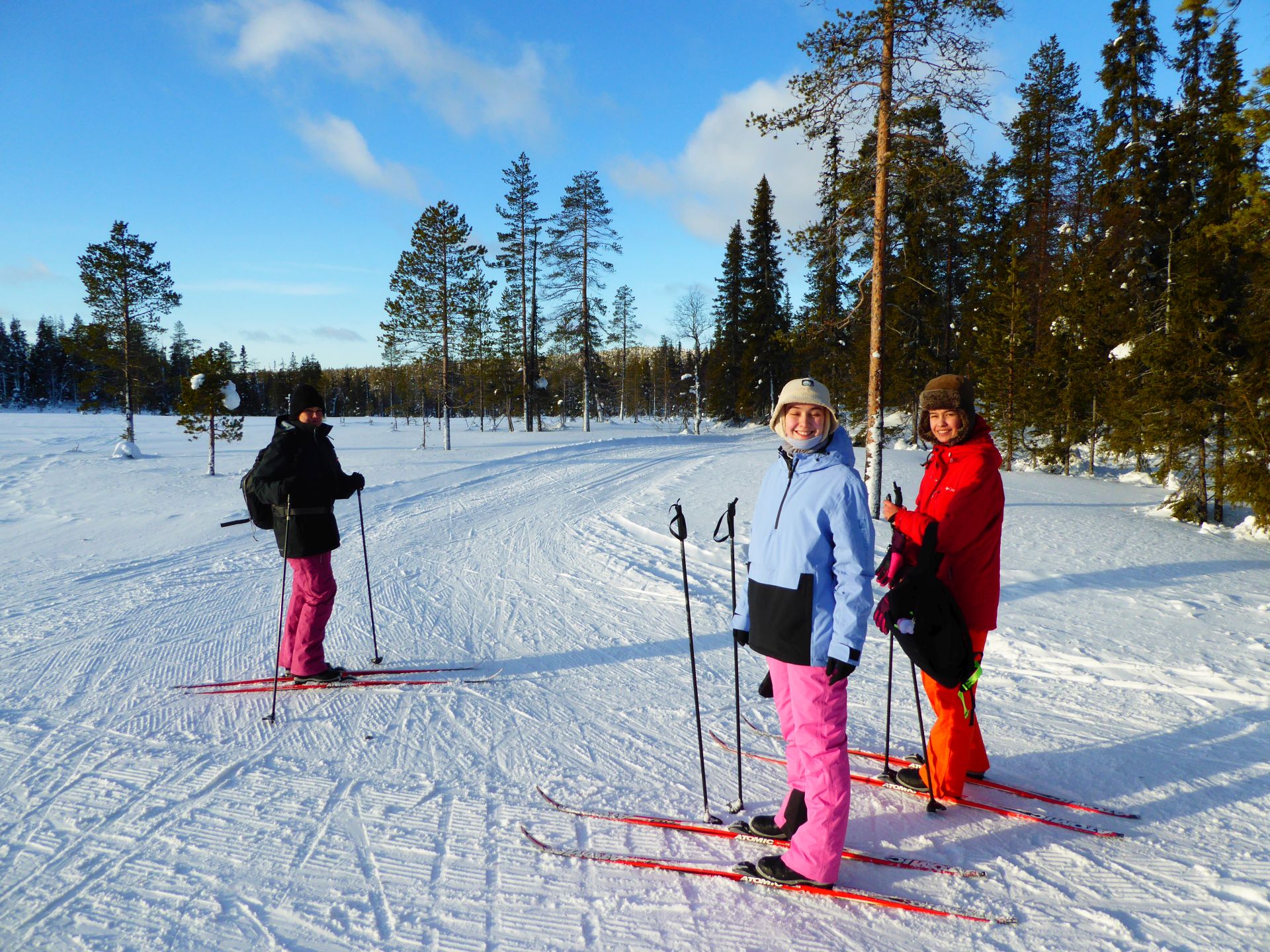 La météo annonce des éclaircies possible et surtout du vent assez fort. Nous optons pour une randonnée à ski de fonds dans le secteur Nord-Est d'Äkäslompolo. Nous laissons la voiture vers l'hôtel Äkäshotelli et prenons la direction du lac Kesänkijärvi pour une boucle d'une quinzaine de kilomètre nous menant au café "Navetta Galleria". Durant la randonnée, le vent se lève et par chance, le ciel nous offre de belles éclaircies.