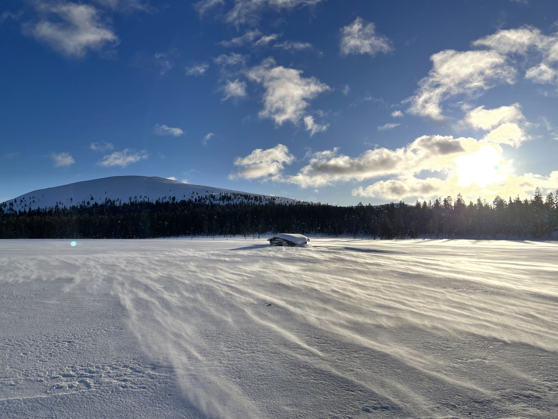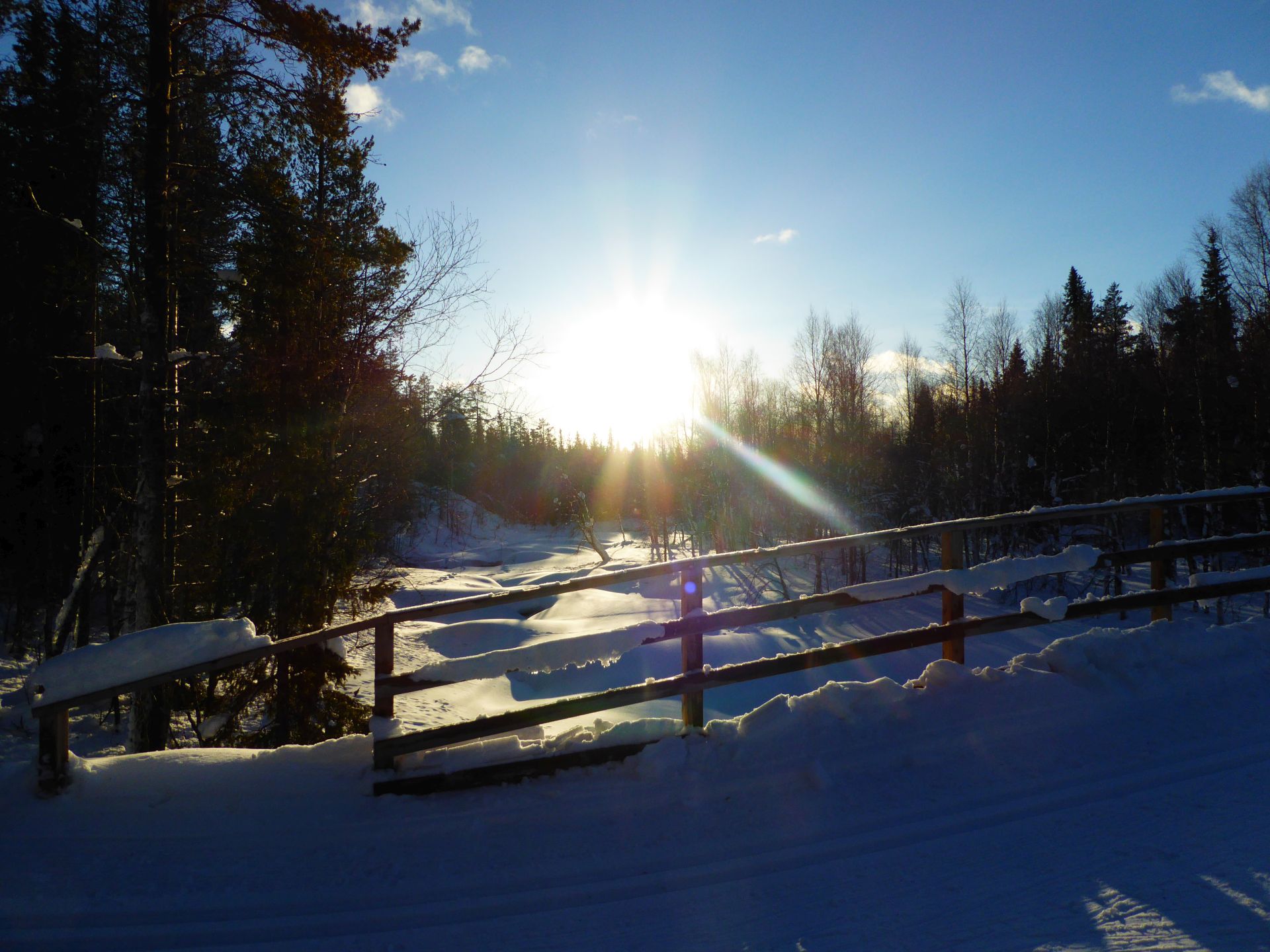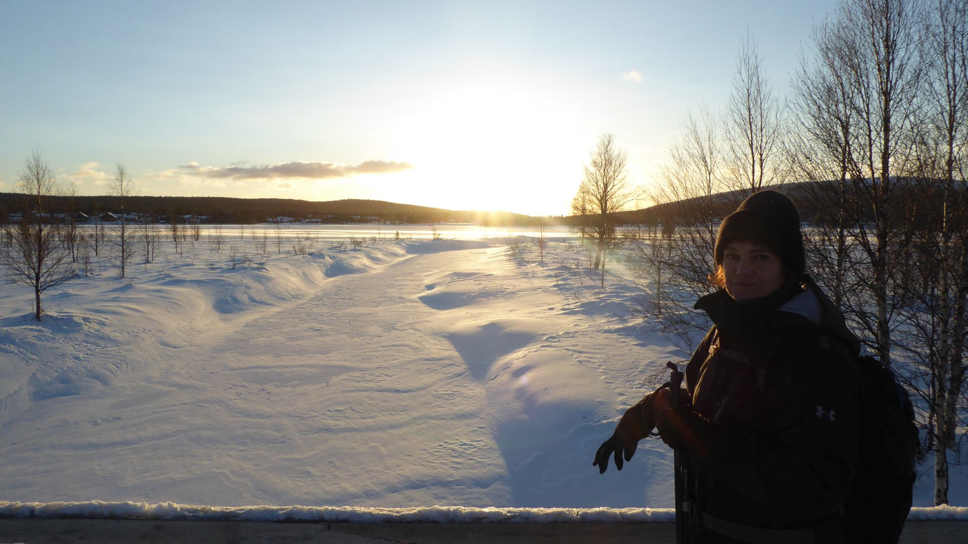 Les 3km pour le retour en passant par le lac d'Äkäslompolo nous ammène en fin de journée laponne (~15h) avec un soleil bas qui nous offre une magnifique luminosité.