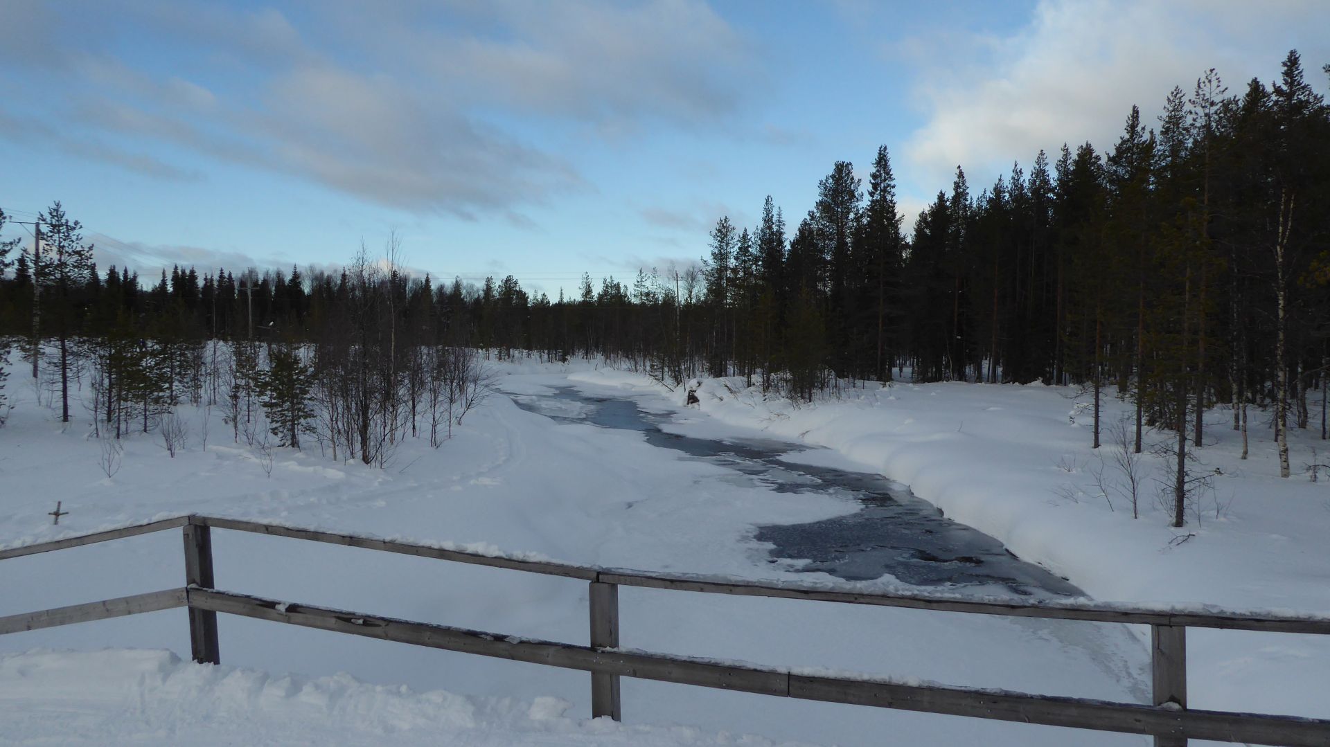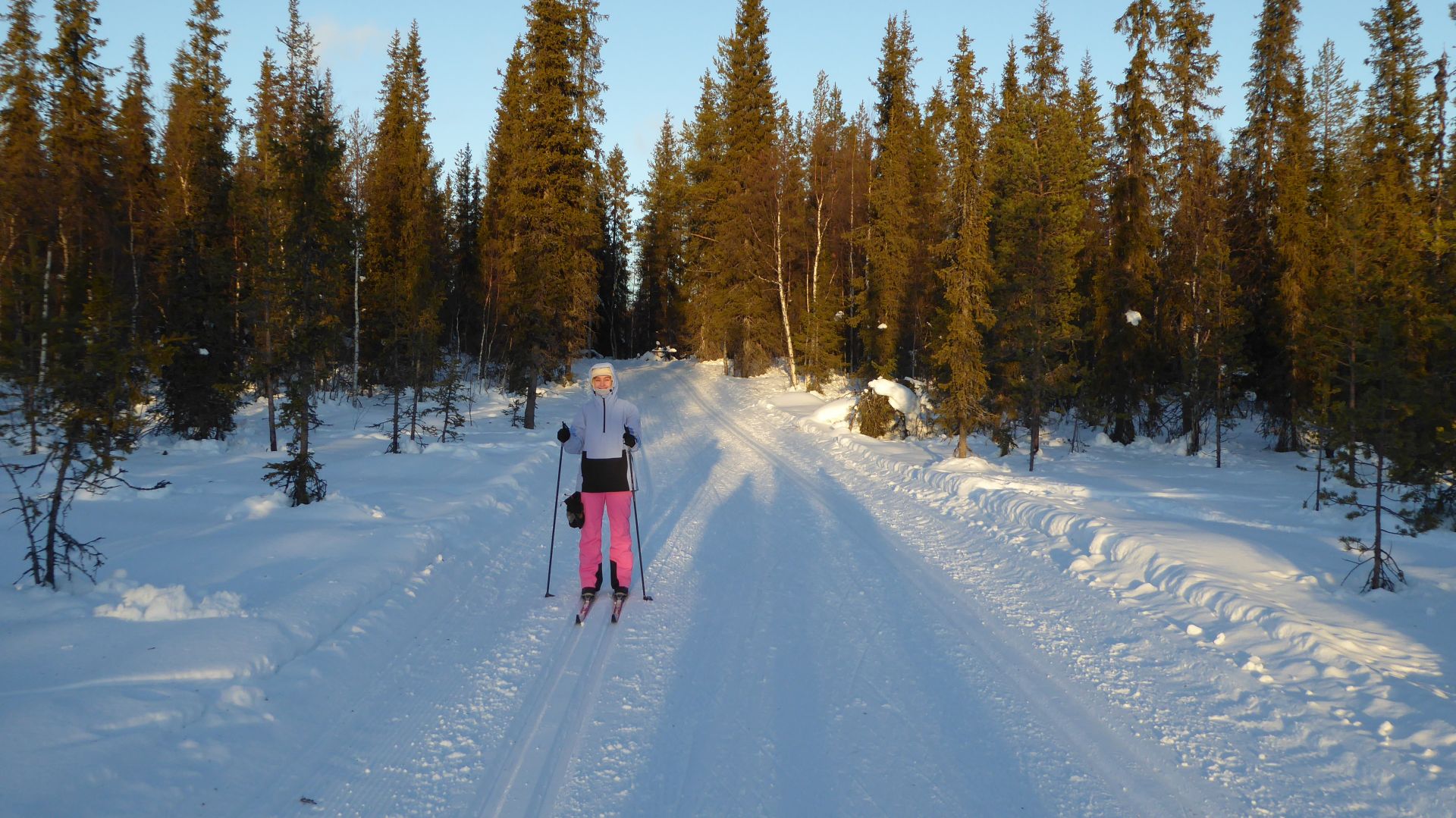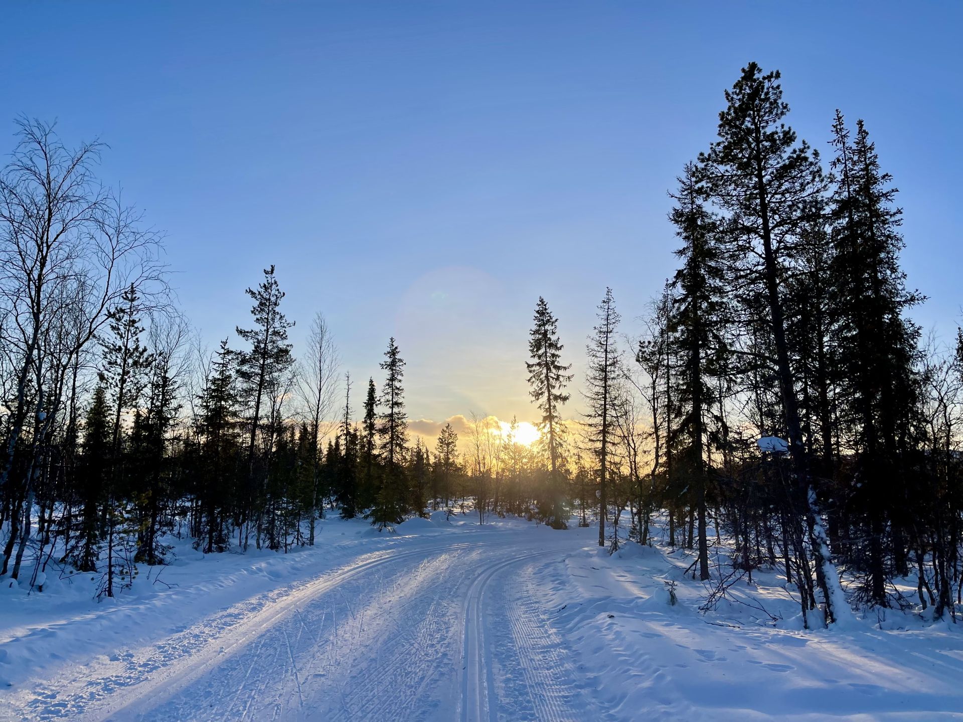 Les 3km pour le retour en passant par le lac d'Äkäslompolo nous ammène en fin de journée laponne (~15h) avec un soleil bas qui nous offre une magnifique luminosité.