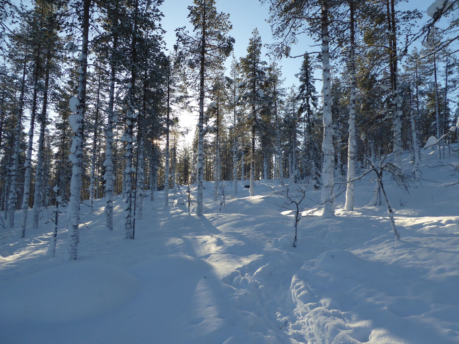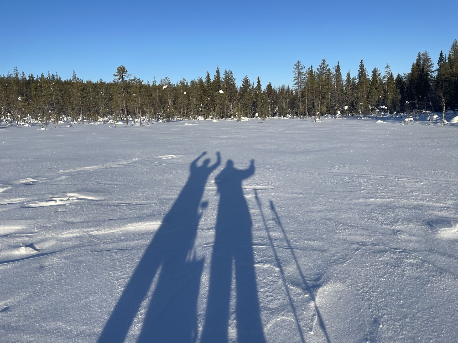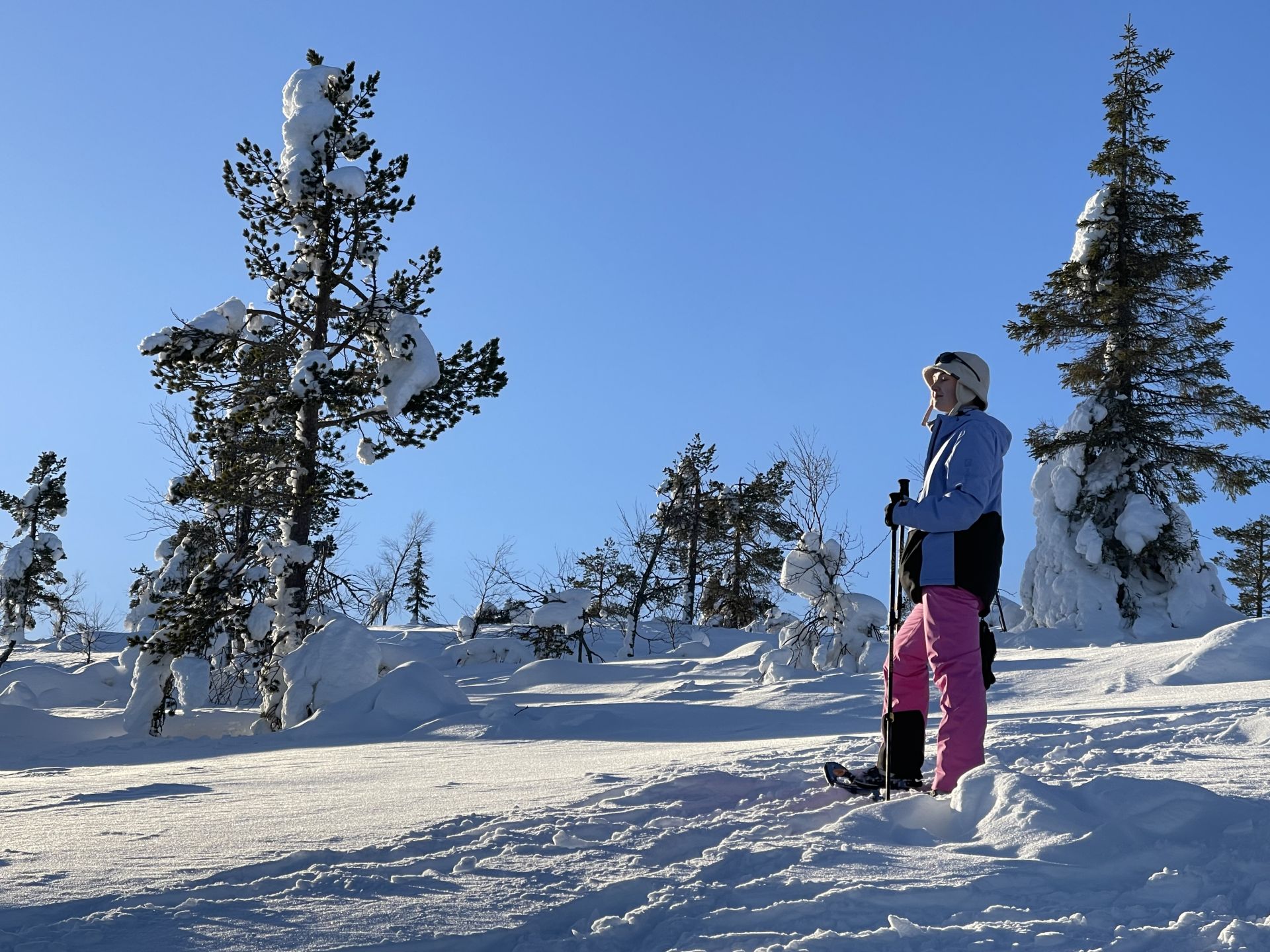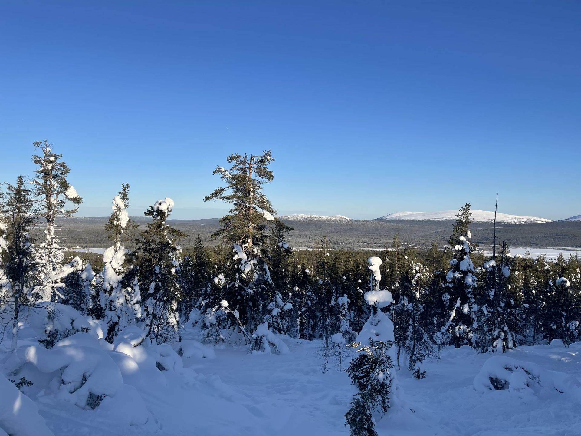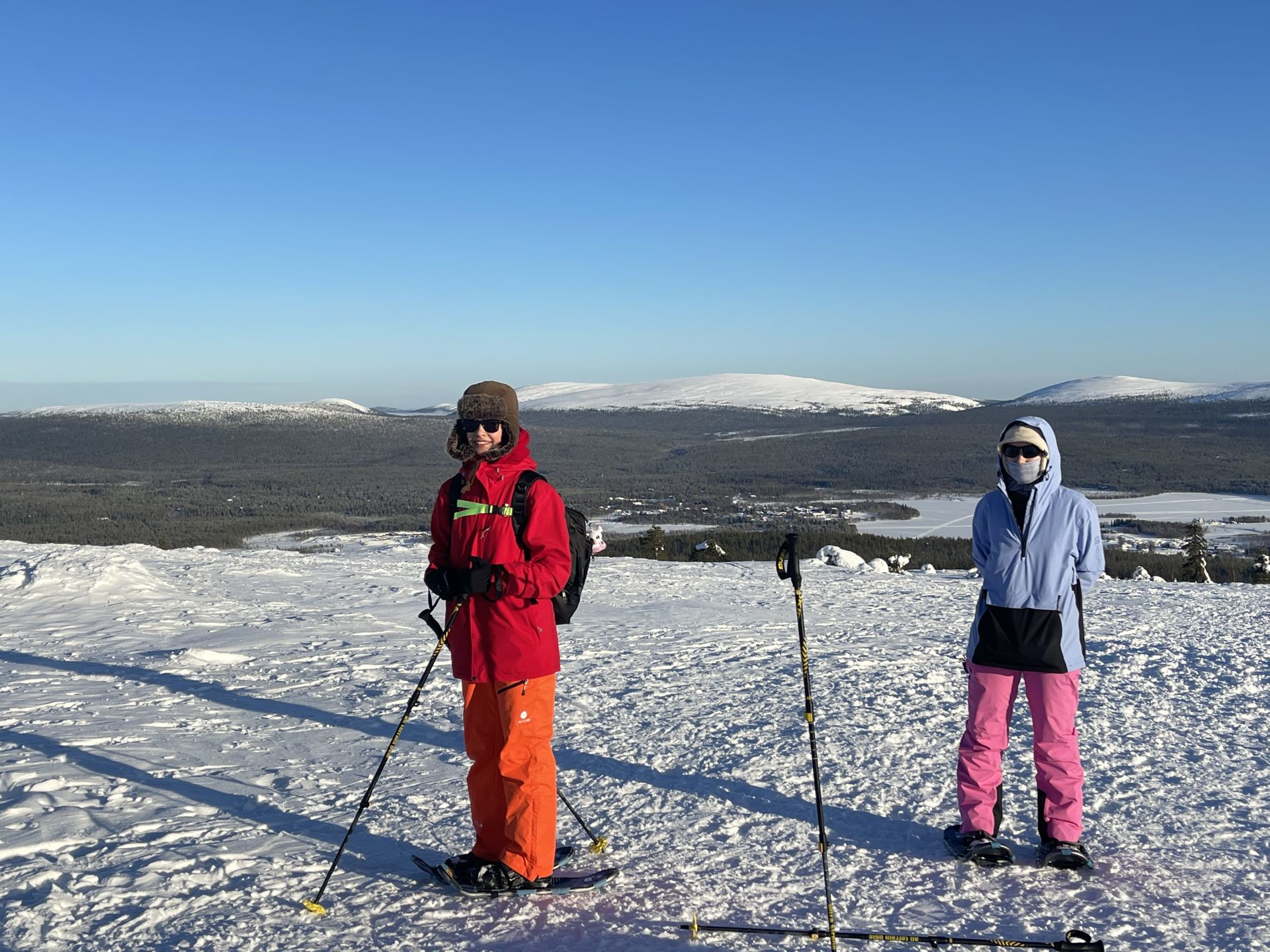 Il fait un peu plus frais ce matin (-5°) et la voiture est toute givrée. Malgré le grand ciel bleu, il est 10h et la luminosité reste basse. Le soleil est levé depuis plus d'une heure et demi, mais il est toujours très bas sur l'horizon. Notre chalet est encore dans l'ombre "matinale" et nous avons de la peine à nous rendre compte de l'heure. Nous prenons un petit-déjeuner copieux (avec des oeufs au plat) puis nous embarquons notre matériel dans la voiture pour nous rendre à ~4km de là vers l'église bleu, point de départ de la montée au Kuer.