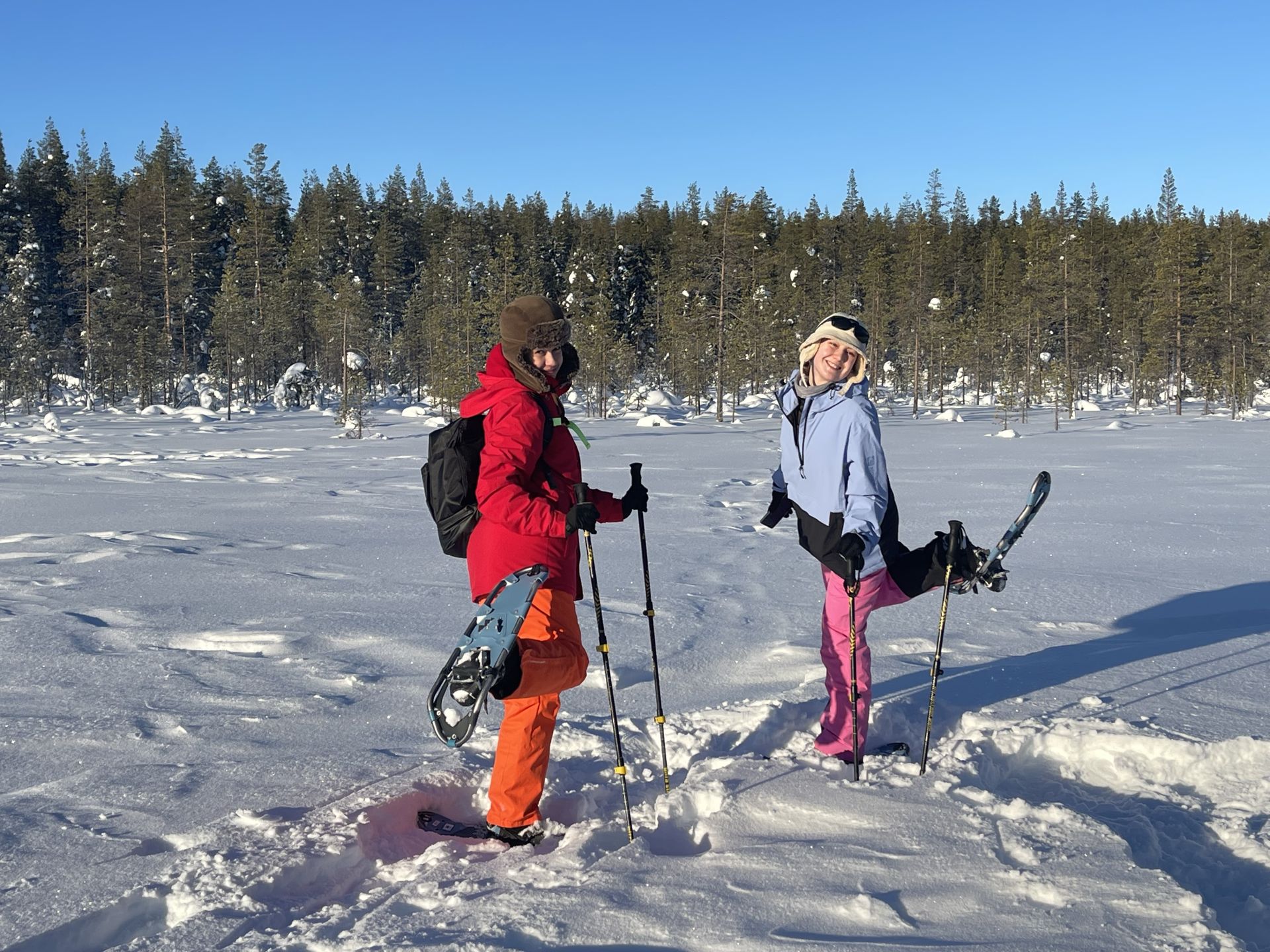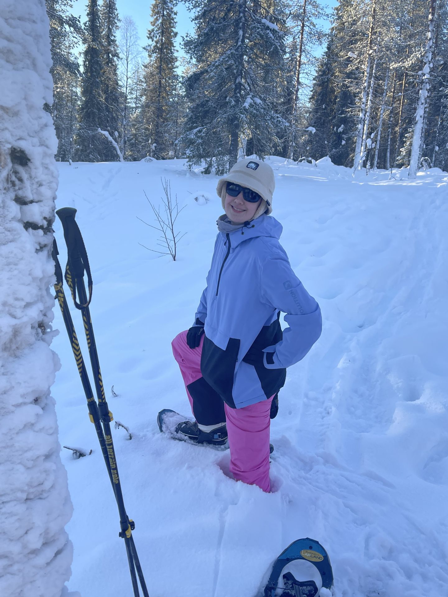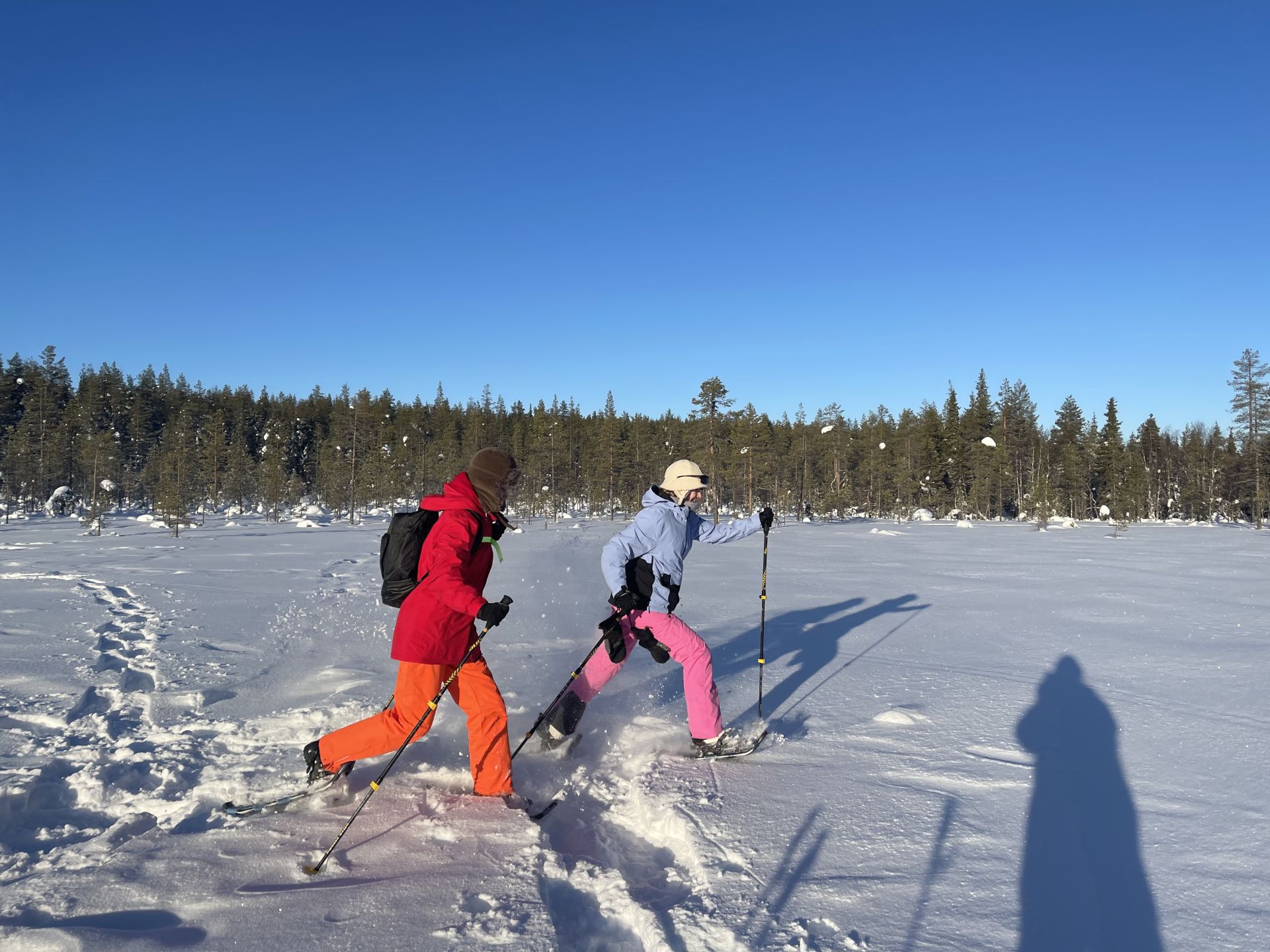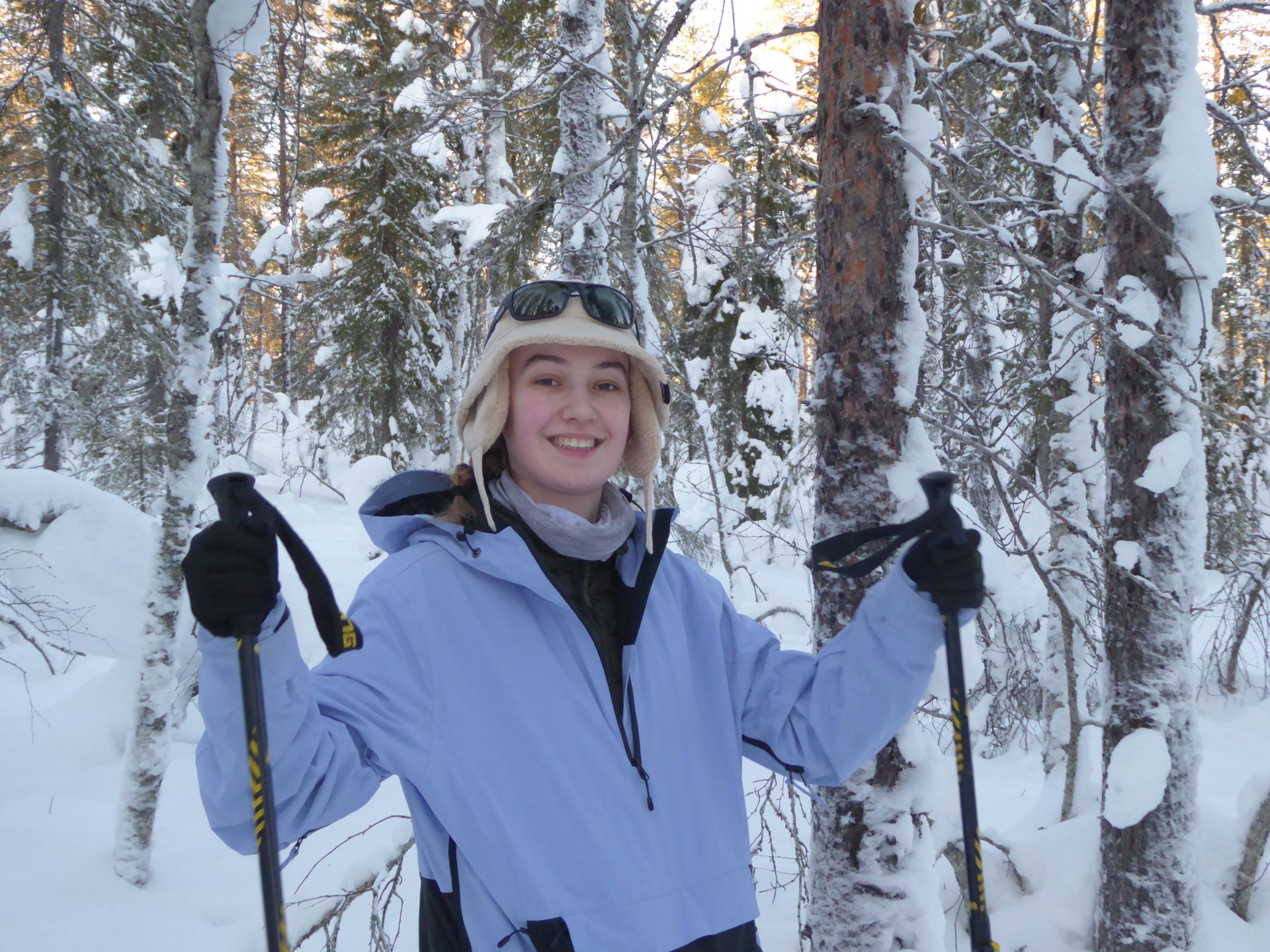 Il fait un peu plus frais ce matin (-5°) et la voiture est toute givrée. Malgré le grand ciel bleu, il est 10h et la luminosité reste basse. Le soleil est levé depuis plus d'une heure et demi, mais il est toujours très bas sur l'horizon. Notre chalet est encore dans l'ombre "matinale" et nous avons de la peine à nous rendre compte de l'heure. Nous prenons un petit-déjeuner copieux (avec des oeufs au plat) puis nous embarquons notre matériel dans la voiture pour nous rendre à ~4km de là vers l'église bleu, point de départ de la montée au Kuer.