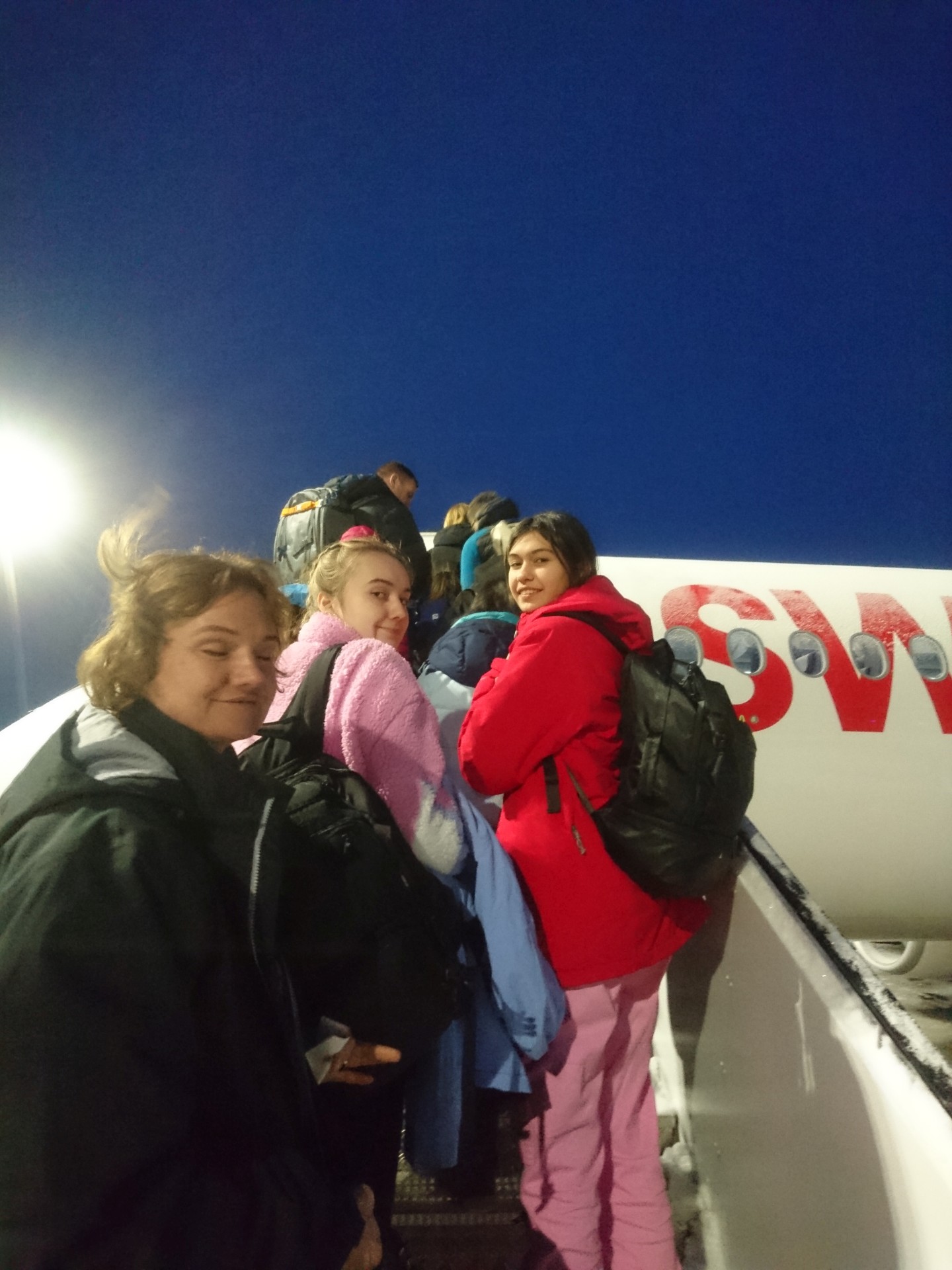 Finalement, à 18h30 le départ est annoncé par notre commandant de bord et à 18h40, heure locale de Finlande, notre avion prend l'air pour un vol de retour qui sera moins long (3h30) que l'attente à l'aéroport. Le vol se passe très bien et nous atterrissons à Genève à 21h10, juste après le départ du dernier train directe pour Neuchâtel... Le débarquement et la récupération des bagages se passe sans anicroche et à 21h30 nous passons la douane pour nous rendre à la gare. Une dernière surprise nous attend: la moitié de la zone d'arrivée et de départ est bloquées par la police! Il nous faudra les indications d'un des employé de l'aéroport et quelques détours pour finalement sortir du terminal de départ par une issue de secours du côté de la gare.
