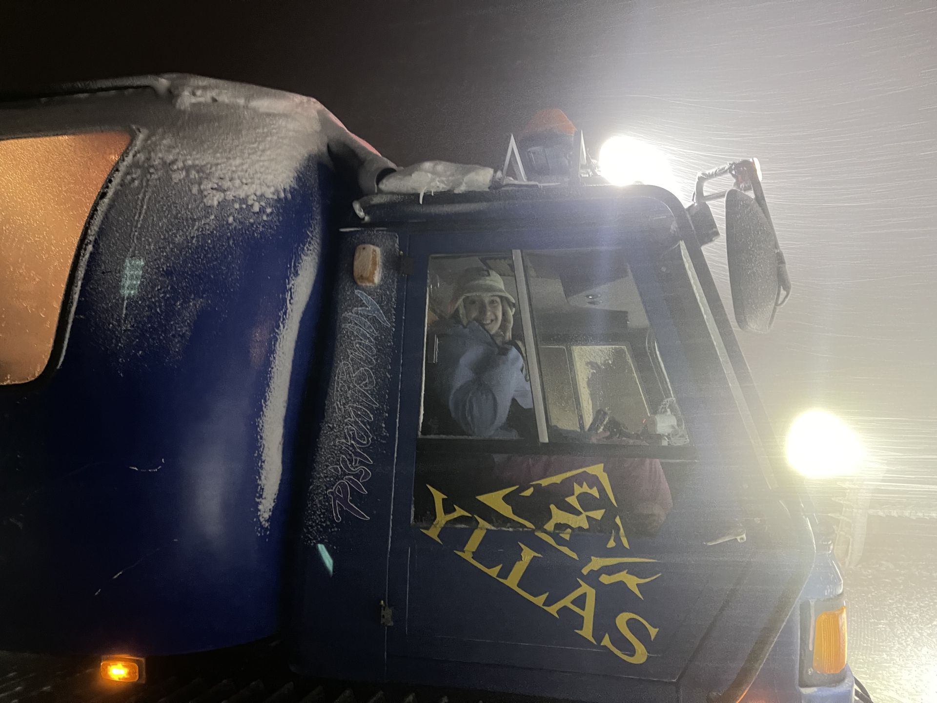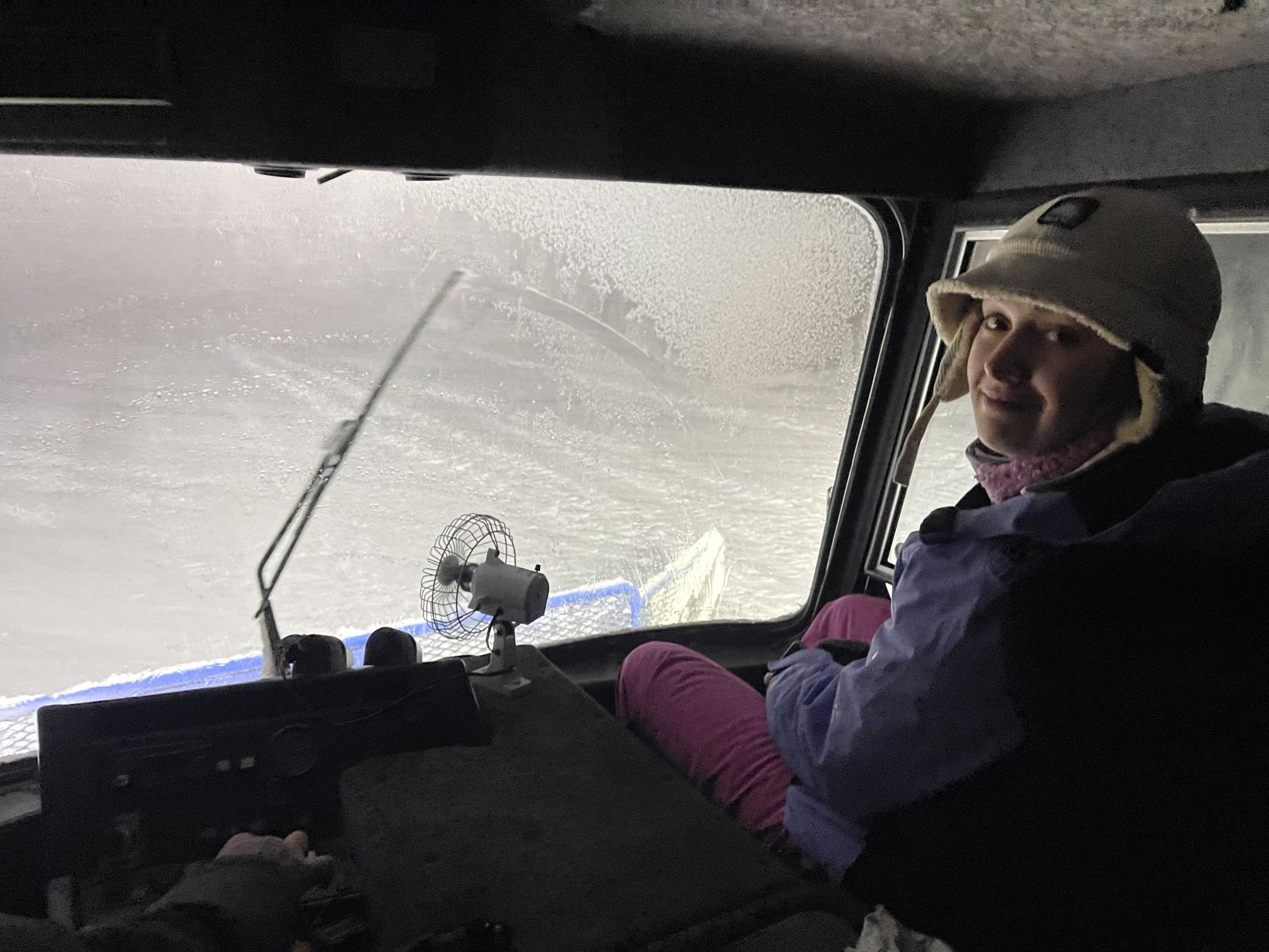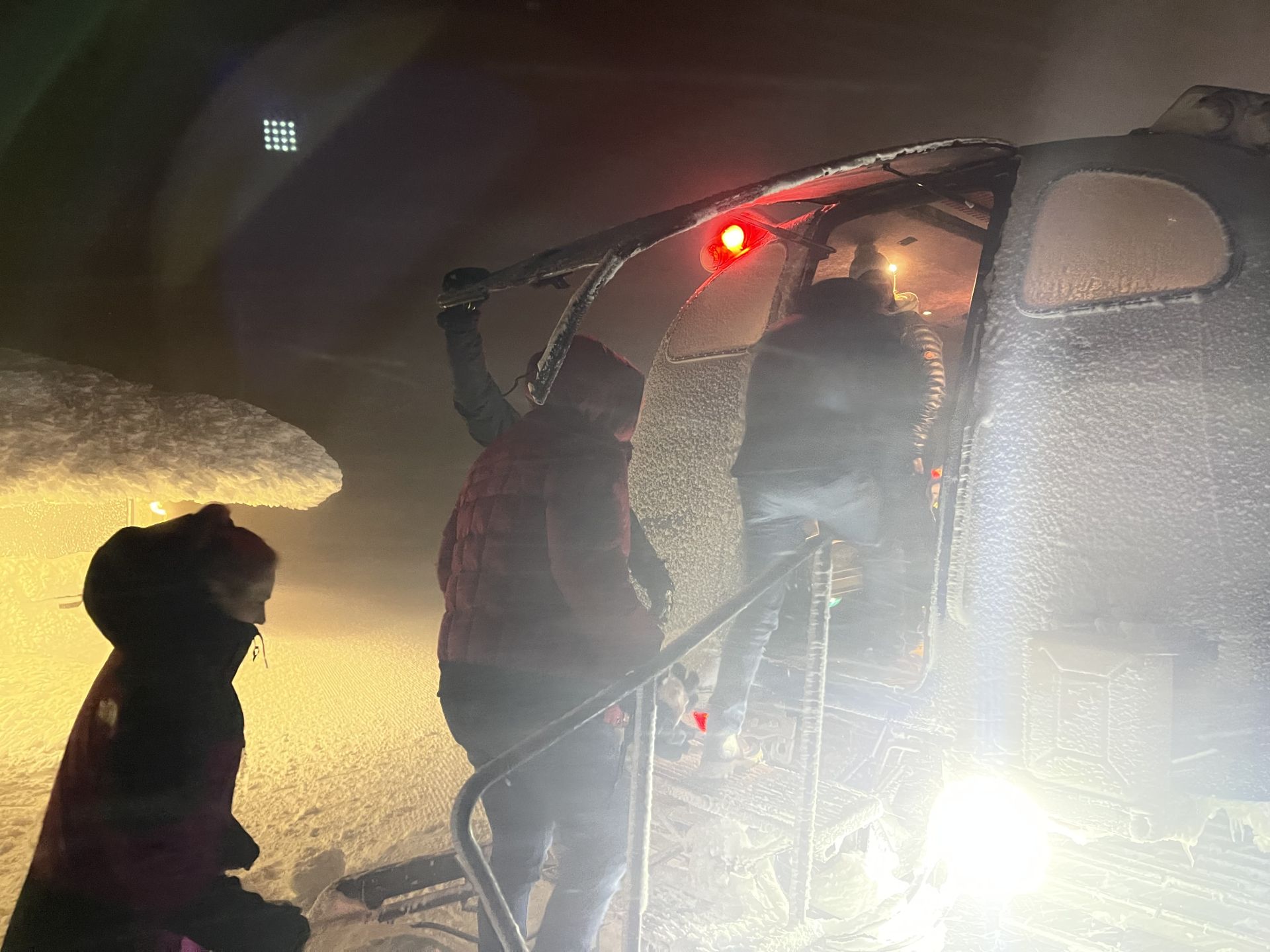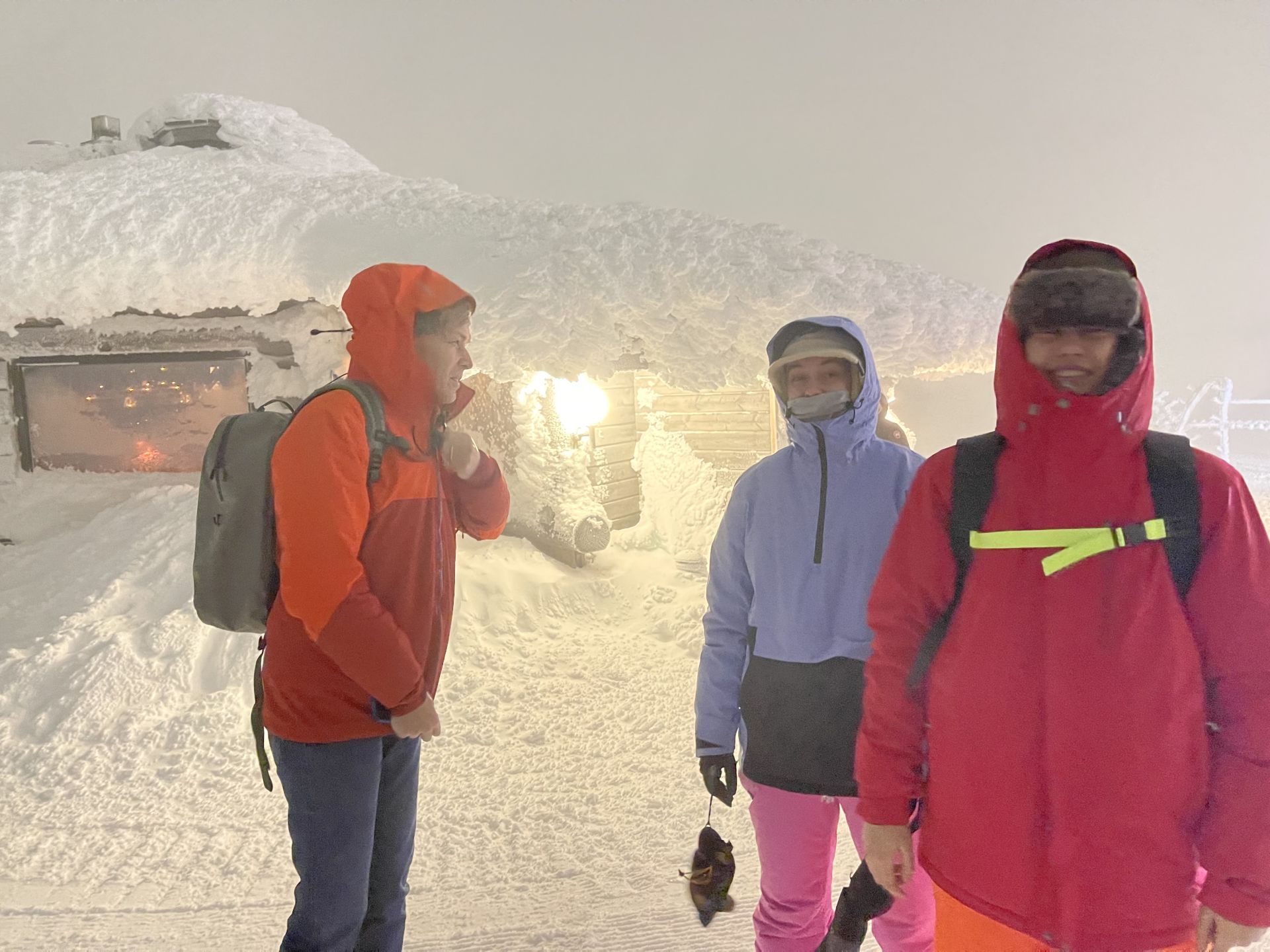 Le retour en ratrac puis en mini-bus se passe aussi dans une ambiance très hivernale avec des chutes de neige et du vent.
