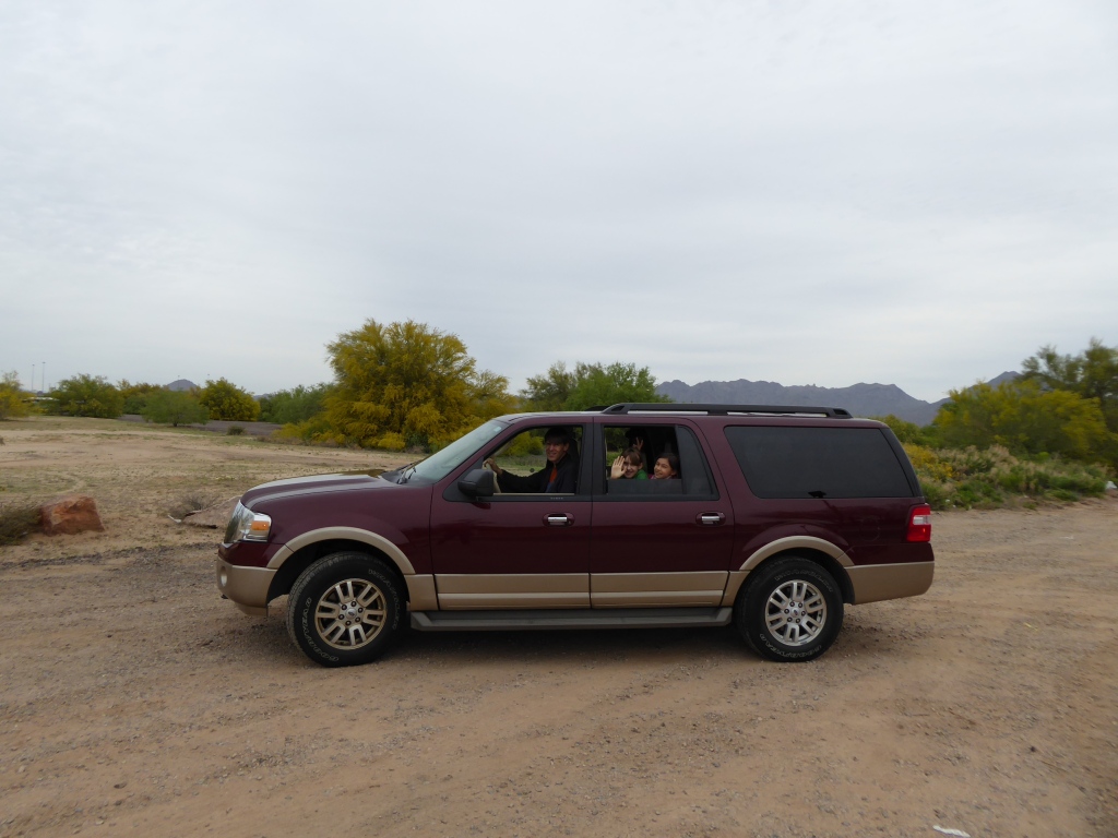 9h30, nous embarquons dans notre 'bâteau'. Au départ de Phoenix le paysage est vallonné et les collines sont couvertes de grands cactus, dans l'ensemble c'est plutôt aride.