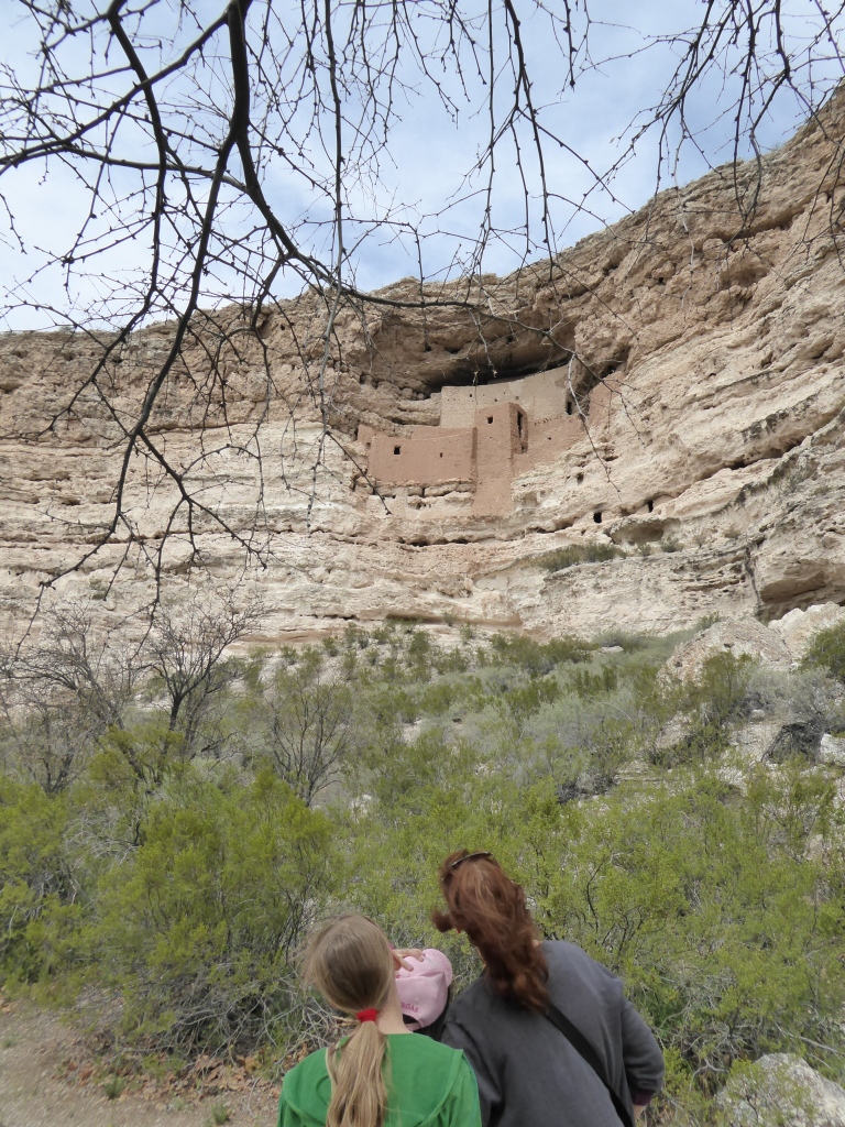 Nous comptons nous arrêter a Flagstaff pour acheter de l'eau et quelques provisions mais avant nous faisons une pause archéologique. Montezuma Castel est un village (pueblo) amérindien du 13ème siècle, construit dans une falaise au dessus d'une rivière. En arrivant nous apercevons un attroupement sur le chemin, nous avons pensé que c'était un bon point de vue pour admirer le village...mais non, tous les regards convergeaient vers deux rangers qui s'activaient dans les buissons avec une sorte de bâton et un seau. En s'approchant, on entend un son de maracas furieux qui sort des fourrés. Les rangers essayaient d'attraper un serpent à sonnettes qui s'était aventuré trop près du chemin. Mais le reste du site est aussi très intéressant... :-)