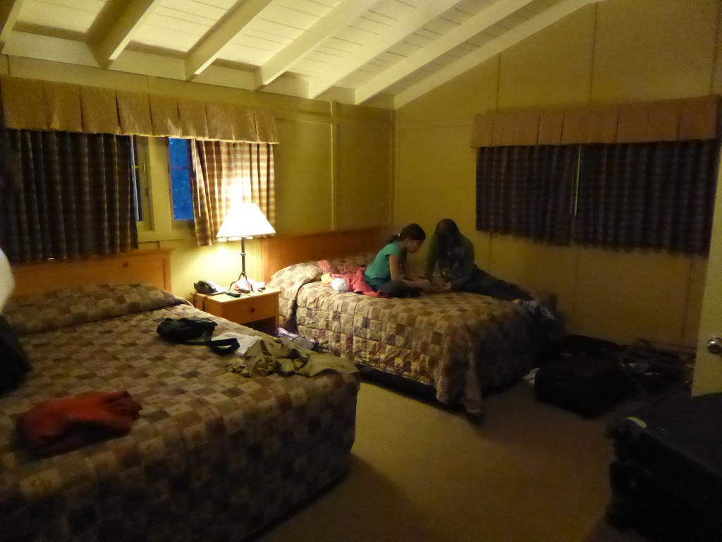 La "chambre" est plus grande que notre appartement à Gampelen. En fait, c'est une suite de 2 chambres avec salle-de-bain, cuisine, salon et salle à manger! Mais ce matin, l'aventure nous attend et nous partons direction Grand Canyon après un copieux petit-déjeuner de pancakes.