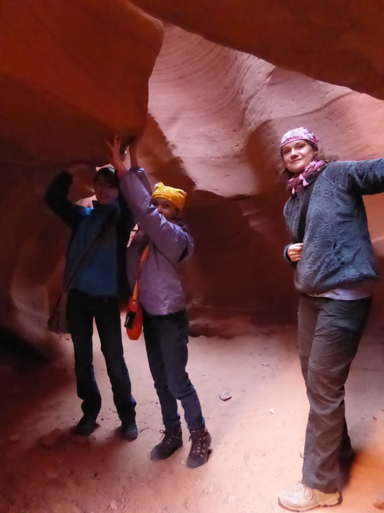 Quand nous ressortons du canyon, nous sommes heureux et recouverts d'une fine couche de sable rouge qui a pénétré partout. Heureusement, il est très fin. Le vent qui souffle toujours fait glisser en permanence une fine pluie de sable dans le canyon.