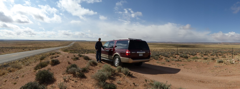 Les paysages le long de la route sont de toute beauté et immenses pour les petits Suisses que nous sommes. La roche et le sable couleur rouge de la région de Monument Valley laissent place en arrivant vers Cortez à une coloration gris-verte et des ambiances presque lunaires.