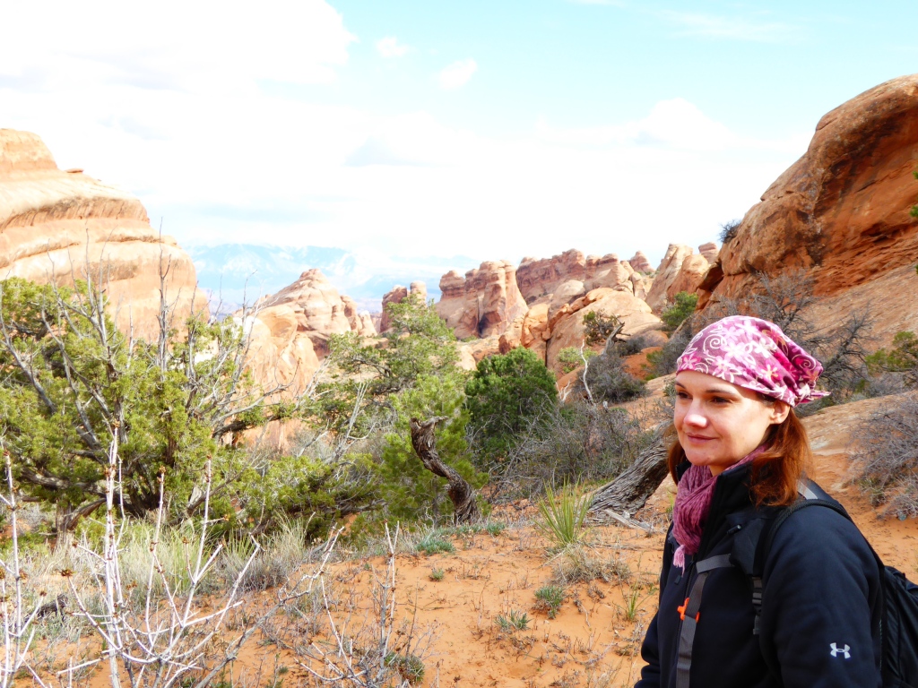 Après un petit déjeuner de muffins, nous partons pour 'Arches National Park'. Il fait grand beau, mais le vent souffle toujours et à l'ombre il fait plutôt froid.