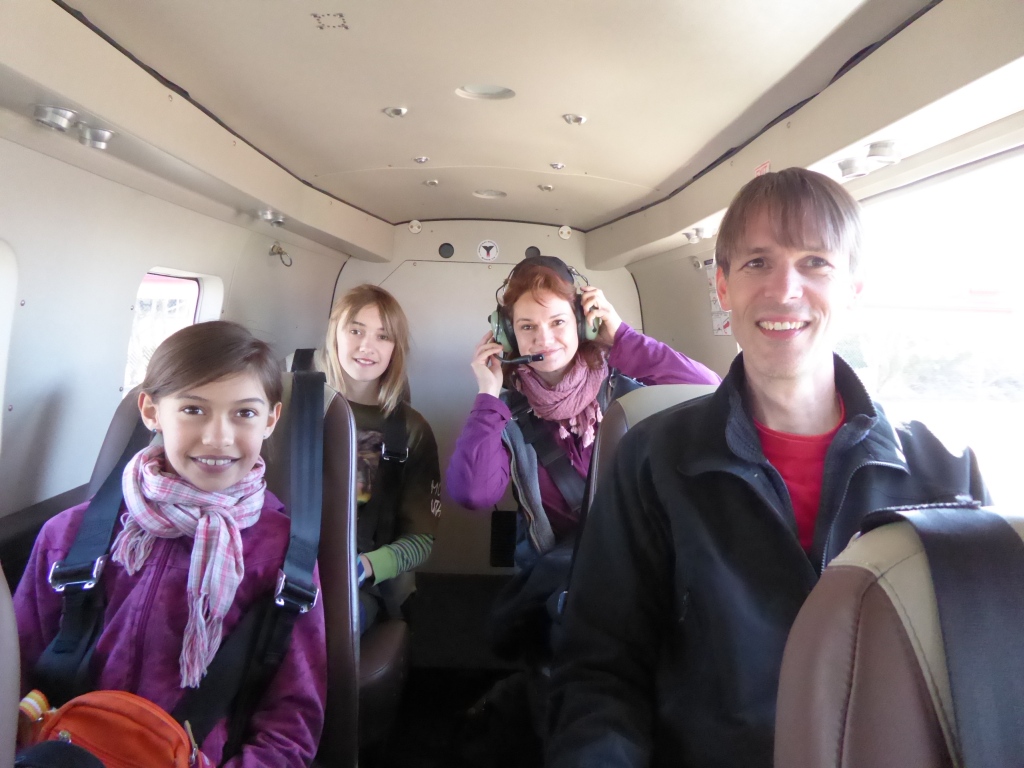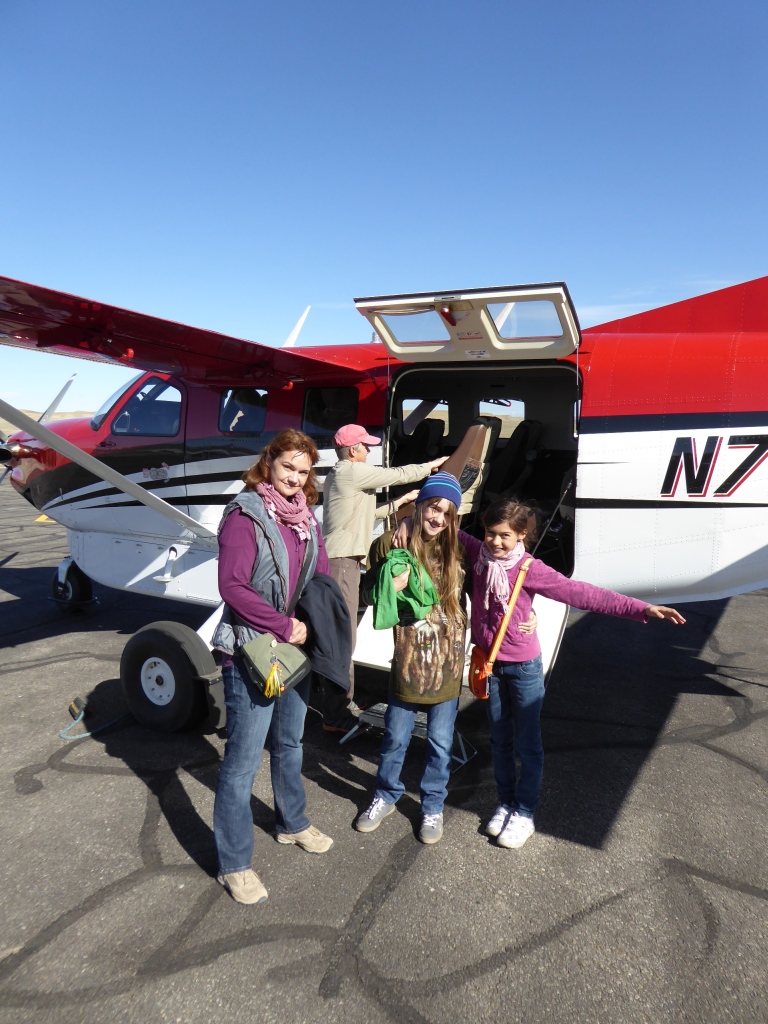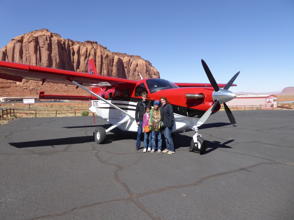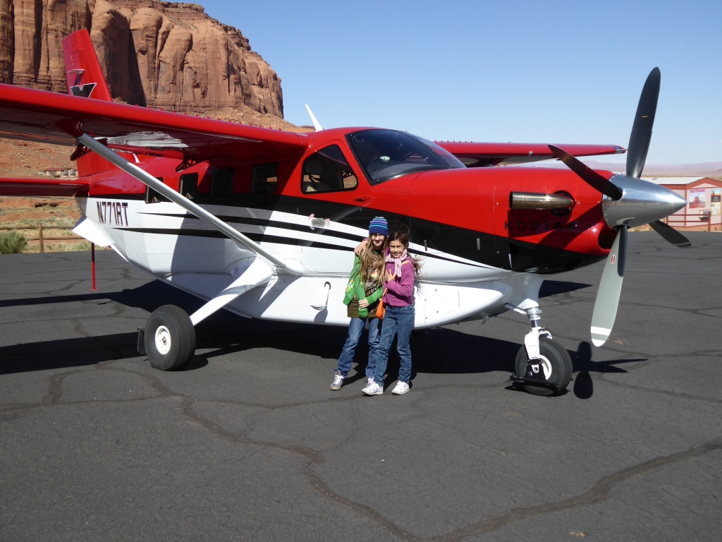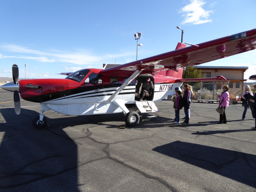 A 9h30 nous arrivons à l'aérodrome de Canyonlands, ~30km au nord de Moab, ou nous faisons connaissance de notre pilote pour les 2 prochaines heures. Suite à une petite explication sur le trajet prévu, il nous présente l'avion (un Kodiak 100 tout neuf) et nous installe à bord en compagnie des 4 autres passagers partageant ce vol d'agrément.