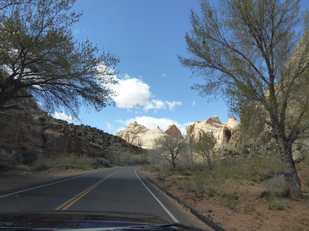Le paysage défile et entre les grands tas de sables gris style carrière abandonnée, les magnifiques roches arrondies et rouge, nous finissons par arrivé à Capitol Reef ou pour la première fois depuis plusieurs jours nous découvrons de la 'vrai' verdure et des arbres fruitiers en fleurs. Une courte pause au 'visitor center' nous donne envie de visiter ce parc, mais la route pour Bryce est encore longue et il faut continuer. Puis le passage des 'Boulder Mountains' nous offre une version XXL de paysages style jurassien, mais à près de 3000m d'altitude. La vue de sapin et de bouleau (pas encore en feuille) nous fait du bien après ces derniers jours dans les cailloux. La route se poursuit entre canyons, plaines, forêts (Dixi National Forest) et autre décors magnifiques. Nous arrivons finalement à Bryce Canyon City et trouvons facilement de quoi nous loger très convenablement au Best Western Inn. Le soleil doit se coucher d'ici moins d'une heure et nous envisageons de faire les 5km qui nous séparent de Bryce Canyon afin d'admirer ses deniers rayons, mais la température (4°C) et le vent presque tempétueux finissent par nous pousser à l'abri dans notre chambre. Beaucoup de kilomètres (~600 en avion et 400 en voiture), énormément de photos et une journée mémorable par les paysages traversés et par l'attitude exemplaire de Lucie et Emilie marque la fin de cette première semaine au USA.