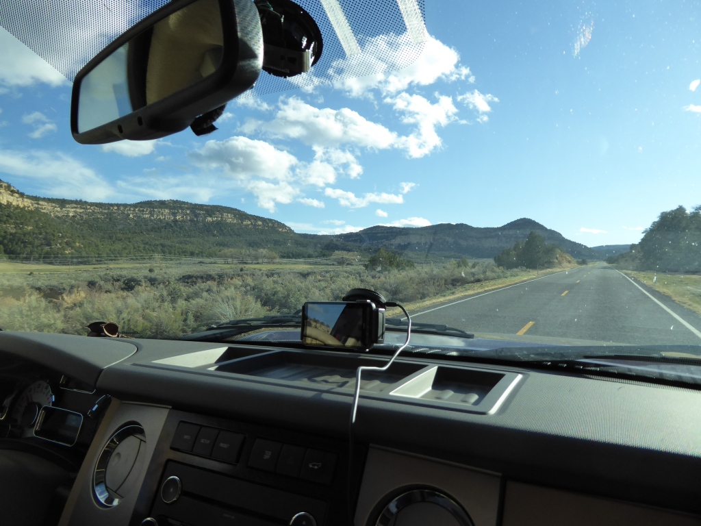 C'est la tête déjà pleine d'image que nous reprenons la route pour une longue étage de 400km qui nous mène à Bryce Canyon City. Nous traversons à nouveau des paysages immenses mais malgré tout très variés. Un arrêt au Subway de Green River nous permet de caler nos estomacs. A notre grande surprise, nous traversons une ville quasi-fantôme et le choix de restaurants est très limité.