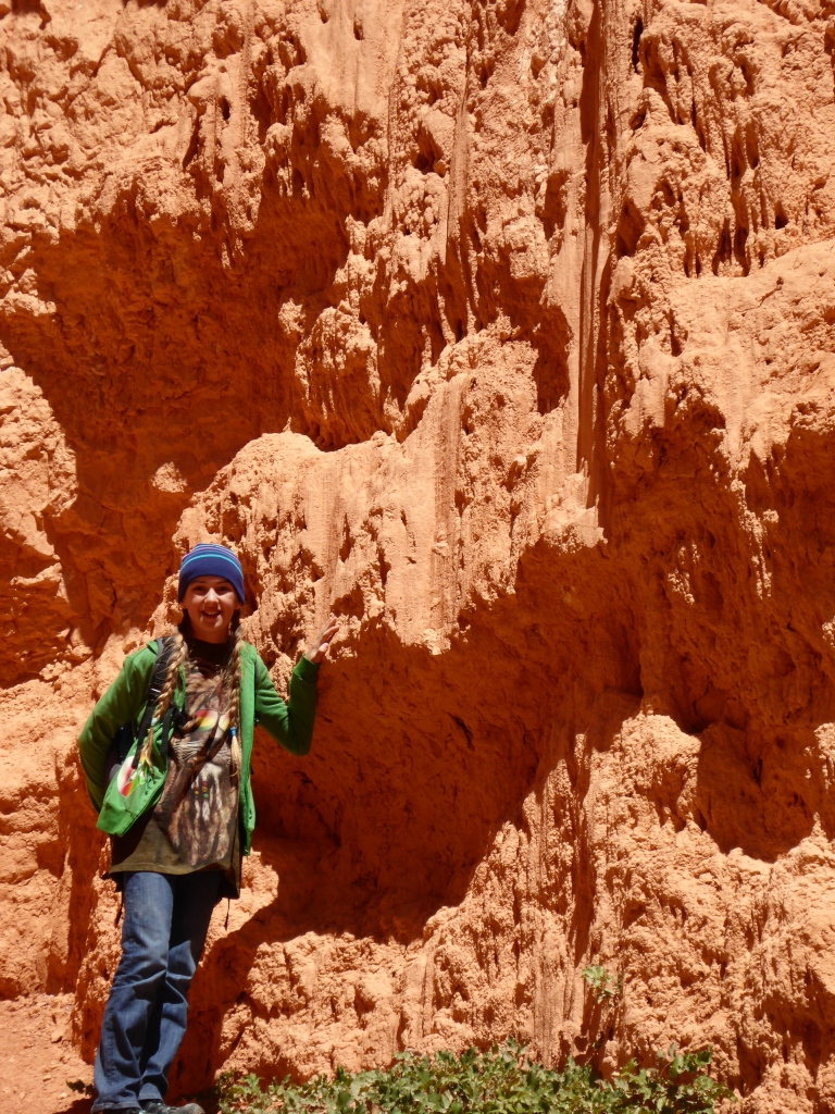 Nous pourrions commencer à nous sentir blasés, mais le spectacle qui nous attends est surprenant. Nous traversons un plateau boisé, pour arriver soudainement sur une arrête qui domine une vallée plantée d'aiguilles et de colonnes rouges en pierre mêlées à des taches de neiges. Nous sommes à 2500m d'altitude et l'hiver n'est pas encore complètement passé.