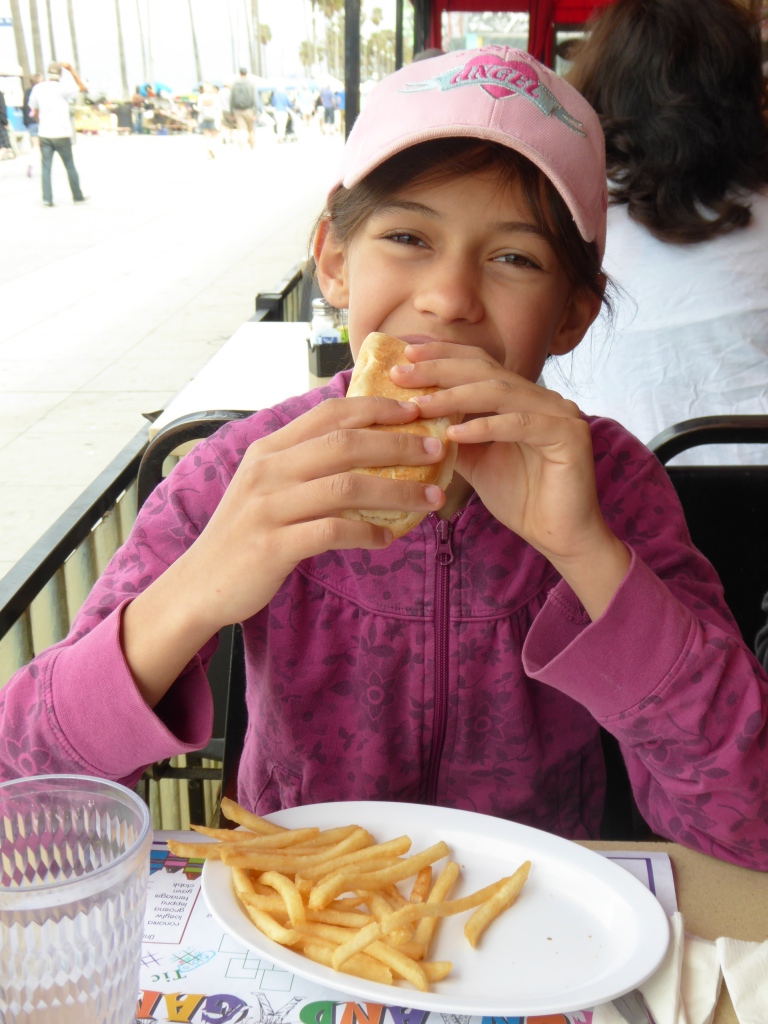 Yannick va récuperer la voiture dans le parking souterrain à 300m de l'hôtell, nous chargeons les bagages et rendons la clé de notre chambre. Puis nous partons à pied le long de Venice Beach afin de trouver de qoui déjeuner. La suite en résumé :