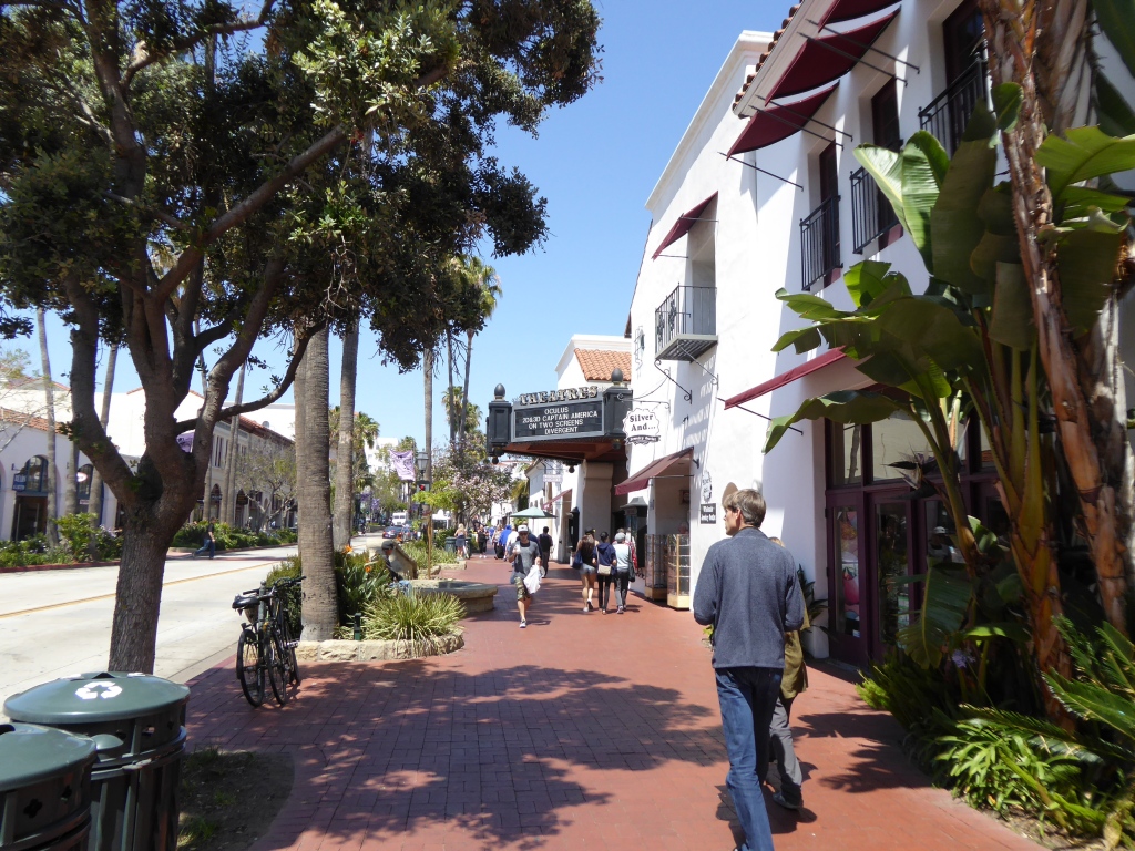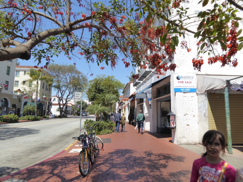 De retour sur la terre ferme, nous partons visiter la rue principale de Santa Barbara. C'est très joli, plein de fleurs et de style clairement espagnol, d'ailleurs la plupart de noms sont aussi en espagnol. Malheureusement, le temps presse et la prochaine étape, Monterey, est à environ 5h de voiture.